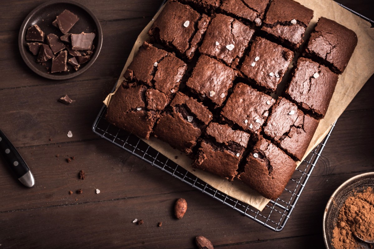 Priprava: Čokolado in maslo stopimo nad paro. V drugi posodi stepemo jajca s sladkorjem, nato dodamo stopljeno čokolado, kakav in ščepec soli. Maso vlijemo v manjši pekač in pečemo približno 25 minut pri 180 °C. Postrežemo z jagodami ali stepeno smetano.