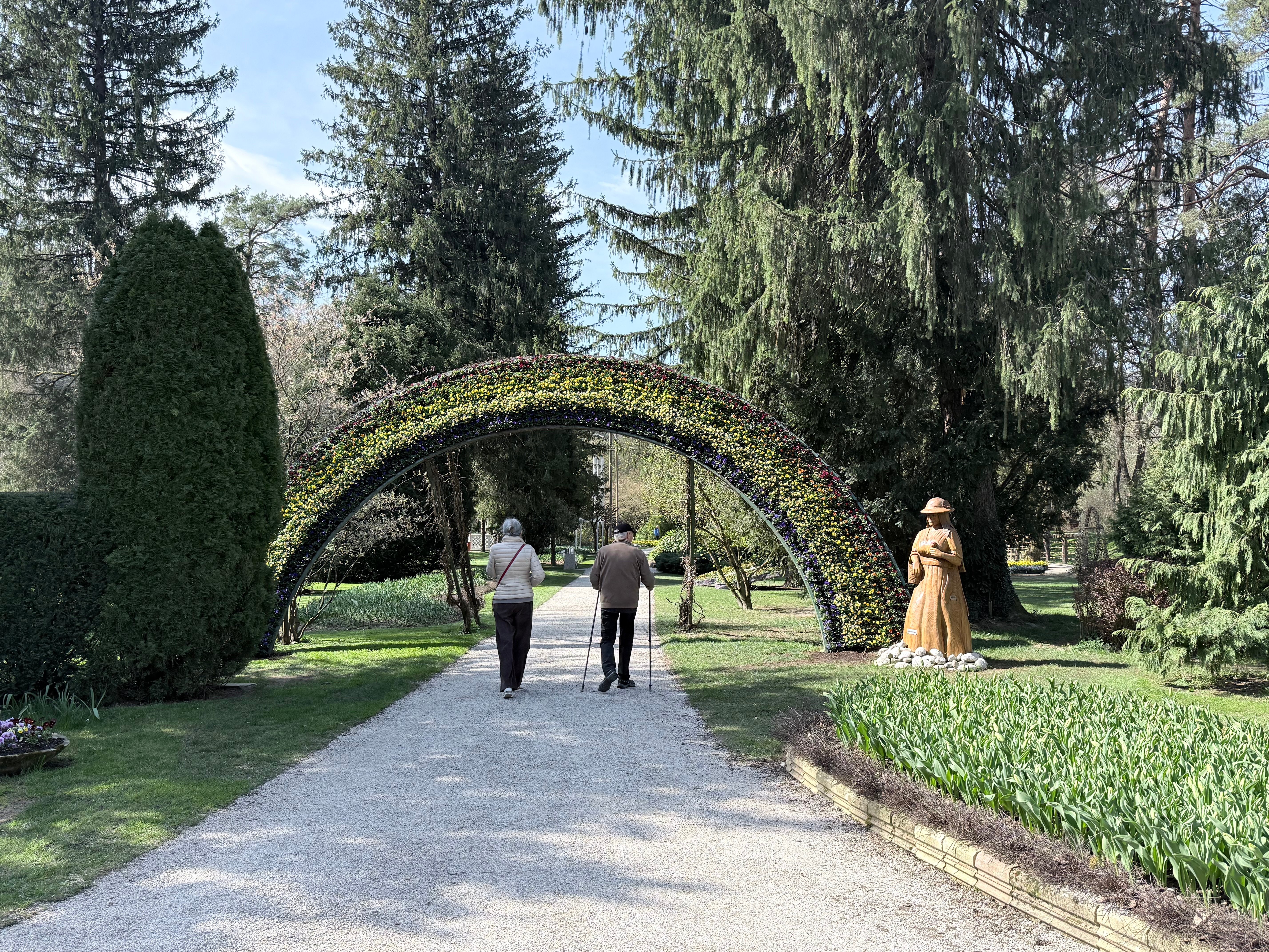 Mozirski gaj smo obiskali v sončnem petkovem dopoldnevu, ko je park še ohranjal miren predpraznični utrip. Med cvetličnimi gredami smo srečevali posamezne sprehajalce, večinoma upokojence in mlade družine, ki so si pred velikonočnimi prazniki privoščili trenutek oddiha v naravi. Na sprehodu smo zmotili 80-letni Mojco in Marijo. "Mozirski gaj sva obiskali že v času božiča, ko so ga krasile lučke. Bilo je zelo lepo, zato sva si želeli park ogledati še v času, ko vse cveti," sta dejali. Da jima je všeč, da je v parku čez teden bolj mirno, saj sta si lahko cvetje ogledali v miru in tišini, sta še dodali. Da več obiskovalcev beležijo med vikendi, sicer pa je višek vedno nekje v času prvomajskih praznikov, pojasnjuje Horvatova.