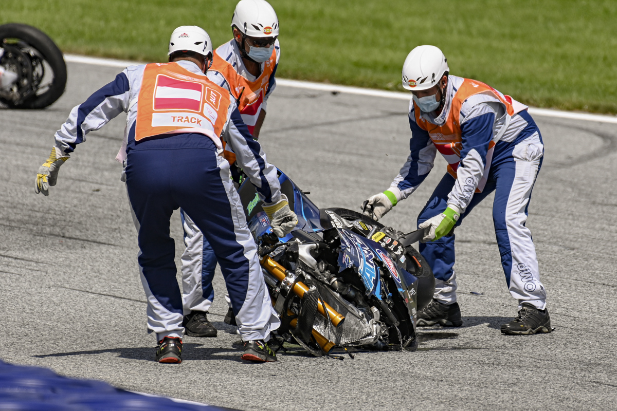 Dirka v razredu moto2 je bila prekinjena po hudi nesreči, ki jo je s padcem zakrivil Enea Bastianini. Žal so trije dirkači za njim naleteli naravnost na njegov motocikel, ki je ostal sredi steze. Najhuje jo je skupil Malezijec Hafizh Syahrin, medtem ko sta ostala vpletena Edgar Pons in Andi Farid Izdihar sama zapustila stezo. Organizatorji so kmalu po nesreči sporočili, da je Syahrin pri zavesti in da ni utrpel hujših poškodb. Dirka pa je bila prekinjena in se je čez slabe pol ure ponovila v krajši, sprinterski izvedbi, s 13 odpeljanimi krogi.