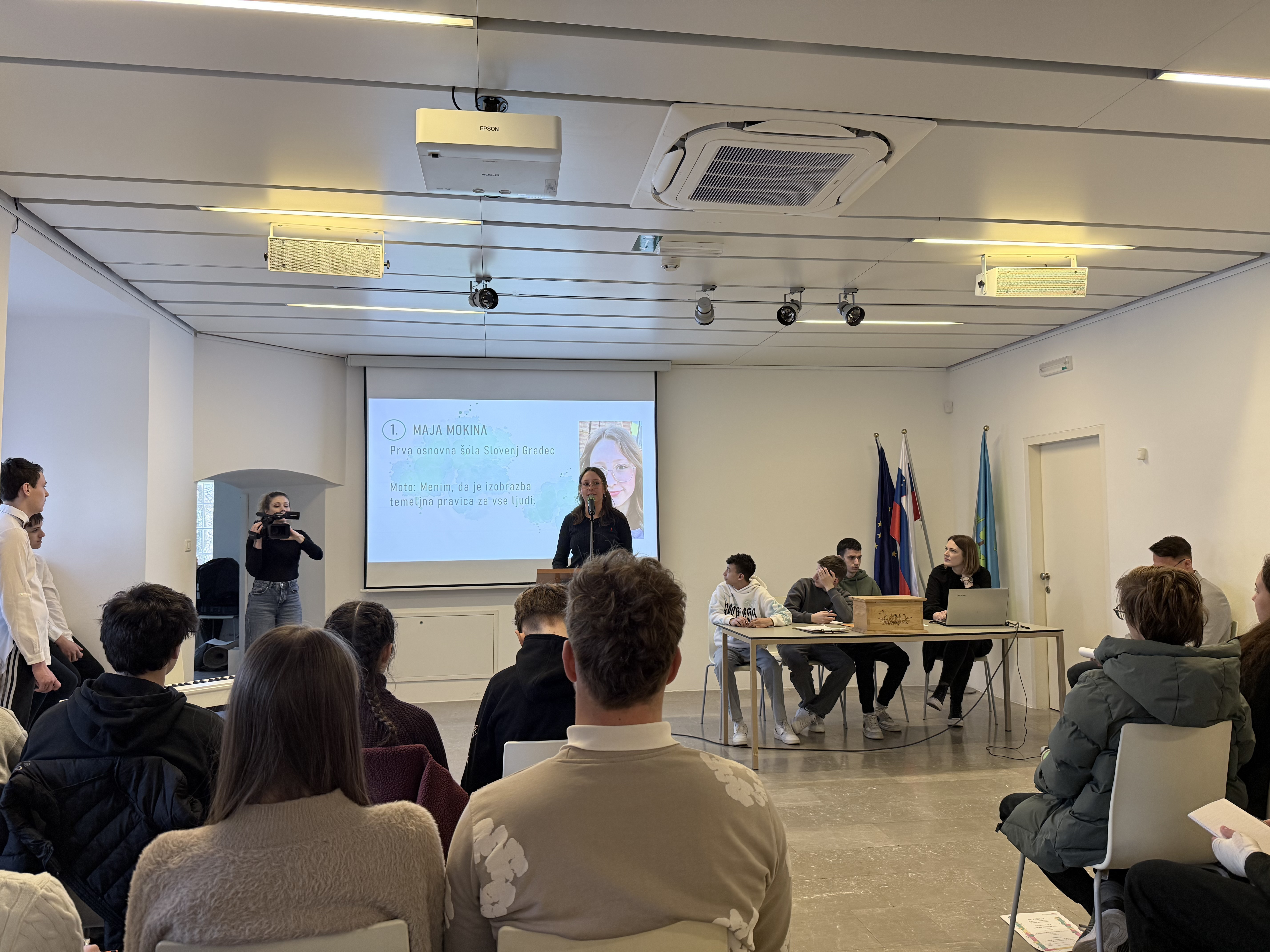 Štirindvajset mladih parlamentarcev se je najprej predstavilo in ob tem navedlo svoj moto, povezan s šolskim sistemom oziroma izobraževanjem. "Izobrazba je temeljna pravica vseh", "Šola mora biti naš drugi dom", "Učenje skozi izkušnje me pripravi na življenje," so navajali učenci in učenke. Nato so se lotili debat. V okviru teme šolski sistem so bile razpisane štiri podteme, v okviru teh pa so oblikovali tri teze za debato. Ena izmed tez se je glasila: "Ocene vedno ne pokažejo učenčevega resničnega znanja in truda". Mladi parlamentarci so v dvajsetih minutah debatirali o tej tezi. Delovno predsedstvo zasedanja so predstavljali učenci Suad Aldžić, Armin Topalović in Argjend Feka (OŠ Juričevega Drejčka), ki so poskrbeli so, da je razprava potekala nemoteno in dostojanstveno. Da ocene ne pokažejo resničnega znanja učencev, so se strinjali vsi mladi parlamentarci. Ajda Anžič je na primer izpostavila, da na oceno vpliva veliko faktorjev. "Nekdo se lahko uči 5-6 ur, a si bo zapomnil bistveno manj, kot nekdo, ki se je učil samo eno uro," je izpostavila. Drejc Pavlič je izpostavil, da ocene povedo le to, koliko so si učenke in učenci sposobni zapomniti. Da so generacije mladih drugačne, sistem ocenjevanja pa je še vedno enak kot v preteklosti, je še dodal. Mladi debaterji so izpostavili, da vseh snovi, ki se jih učijo v šoli, ne bodo potrebovali v vsakdanjem življenju, da je potrebno v obzir vzeti tudi praktično znanje, ki jim bo v življenju bolj koristilo. Izpostavili so, da nihče ni enak, zato je treba upoštevati, da imajo učenke in učenci različne načine učenja in področja, ki jim bolj ležijo kot druga.