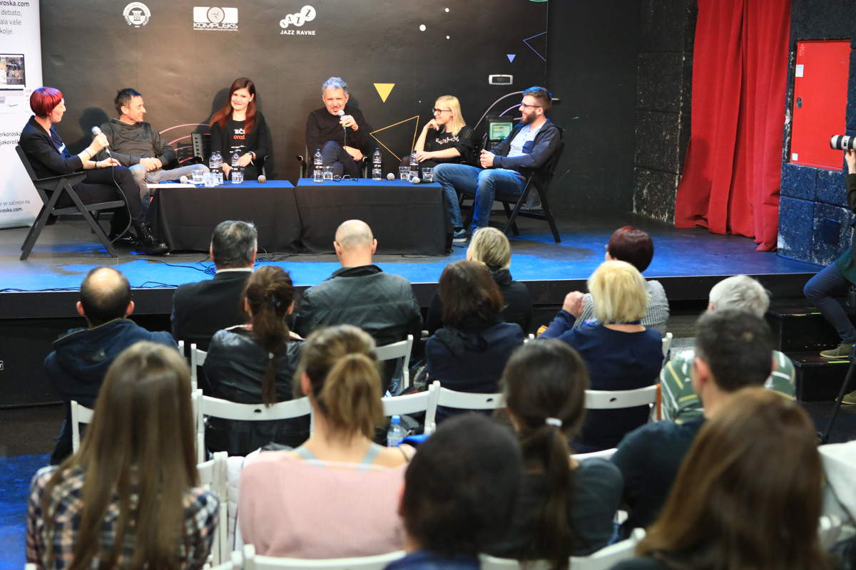 O aktualnih zadevah s področja medijev so danes v KMKC Kompleksu na Ravnah razpravljali Ana Pisar, direktorica KMKC Kompleks, Urška Polanc, novinarka Večera, Drago Benko, ravnatelj Gimnazije Ravne, Robi Brezovnik, profesor na Gimnaziji Ravne, in Klemen Potnik, predsednik Mladinskega sveta Radlje ob Dravi. Debato je vodila Petra Lesjak Tušek.