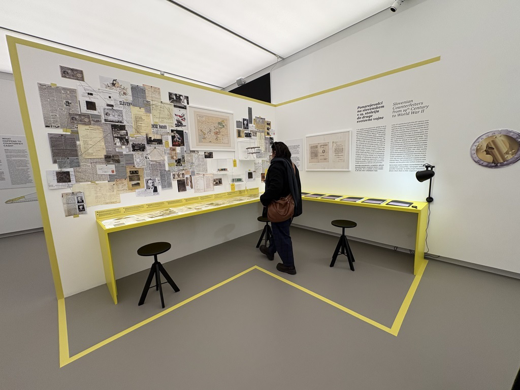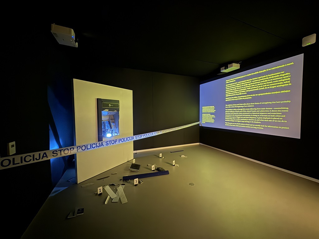 V prostorih NLB Muze na Čopovi ulici 3 v Ljubljani je na ogled razstava Denar in kriminal: Tekma brez konca, ki bo obiskovalcem na ogled vse do 8. februarja prihodnje leto. Razstavo je NLB Muza pripravila v sodelovanju s številnimi domačimi in tujimi partnerji, med katerimi imajo pomembno vlogo Uprava kriminalistične policije, Nacionalni forenzični laboratorij in Muzej slovenske policije.