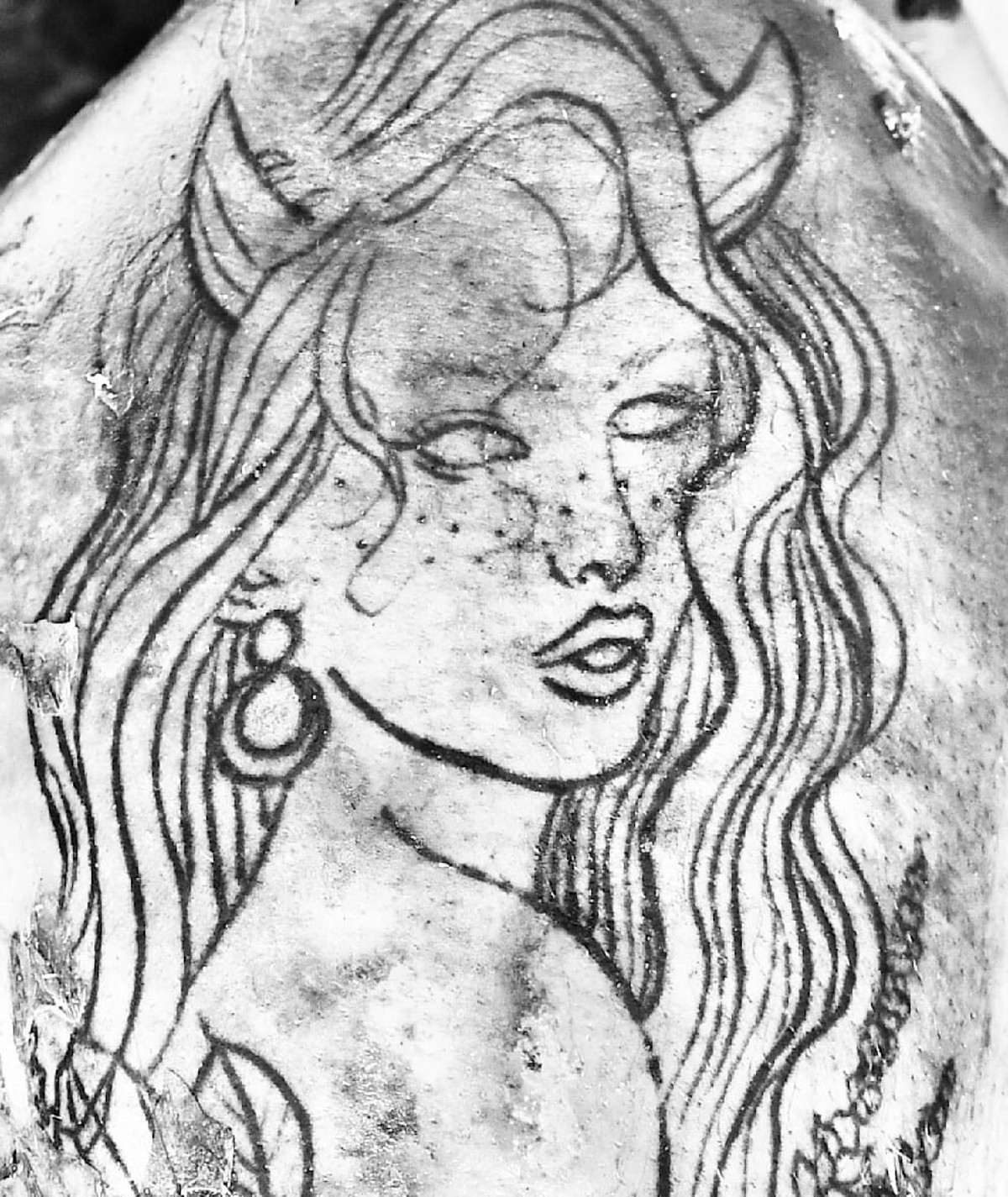 Moški je imel na hrbtu tudi tetovažo pravoslavnega križa in žensko glavo, ki jo je nemška policija objavila.