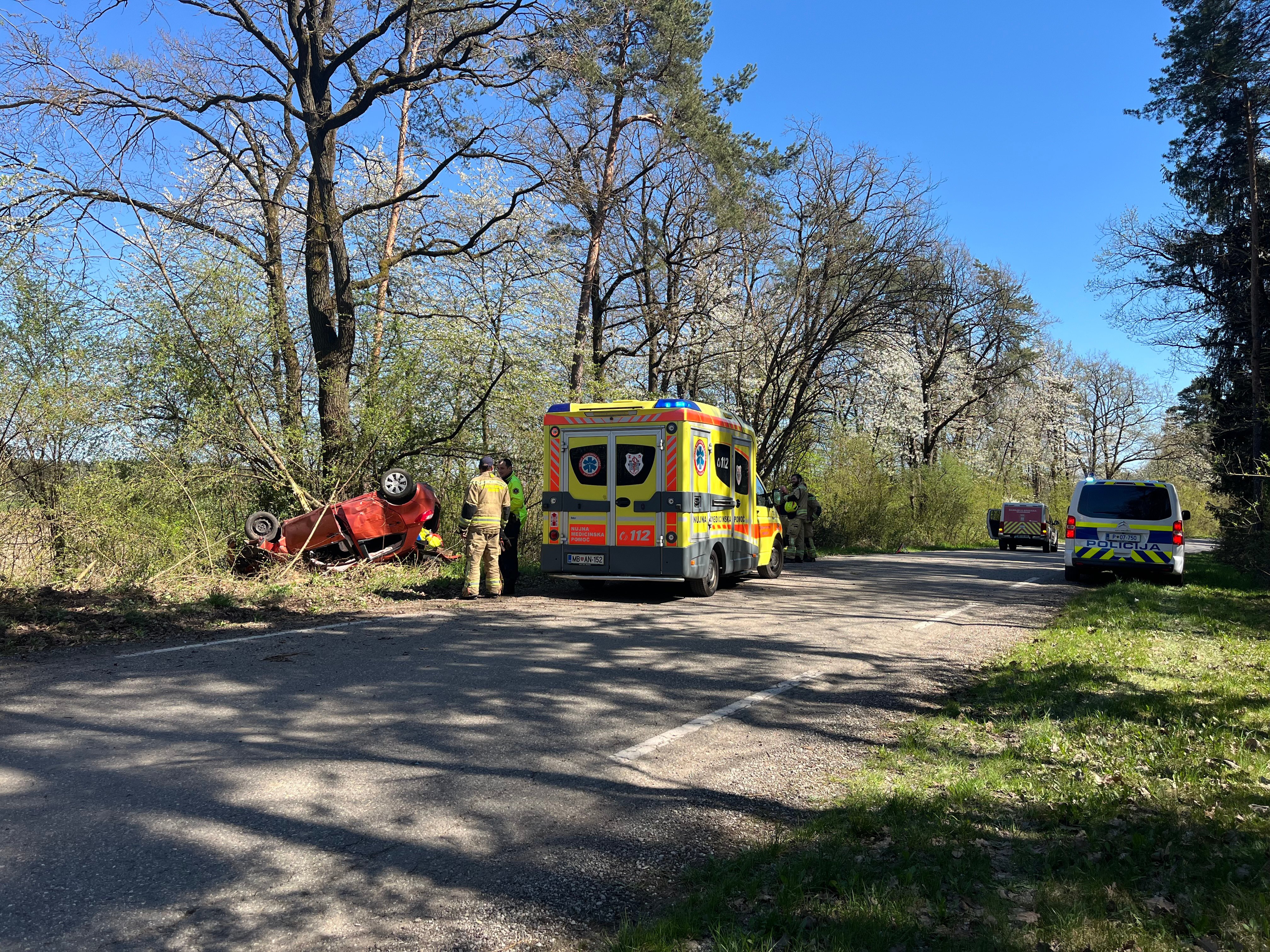Avtomobil je zaneslo s cestišča in ga prevrnilo na streho. Kljub dramatičnemu prizoru, ki je pritegnil pozornost mimovozečih in sprehajalcev v kraju, se je nesreča za udeleženca končala bistveno bolje, kot bi se lahko - po do zdaj znanih podatkih je utrpel le lažje poškodbe.