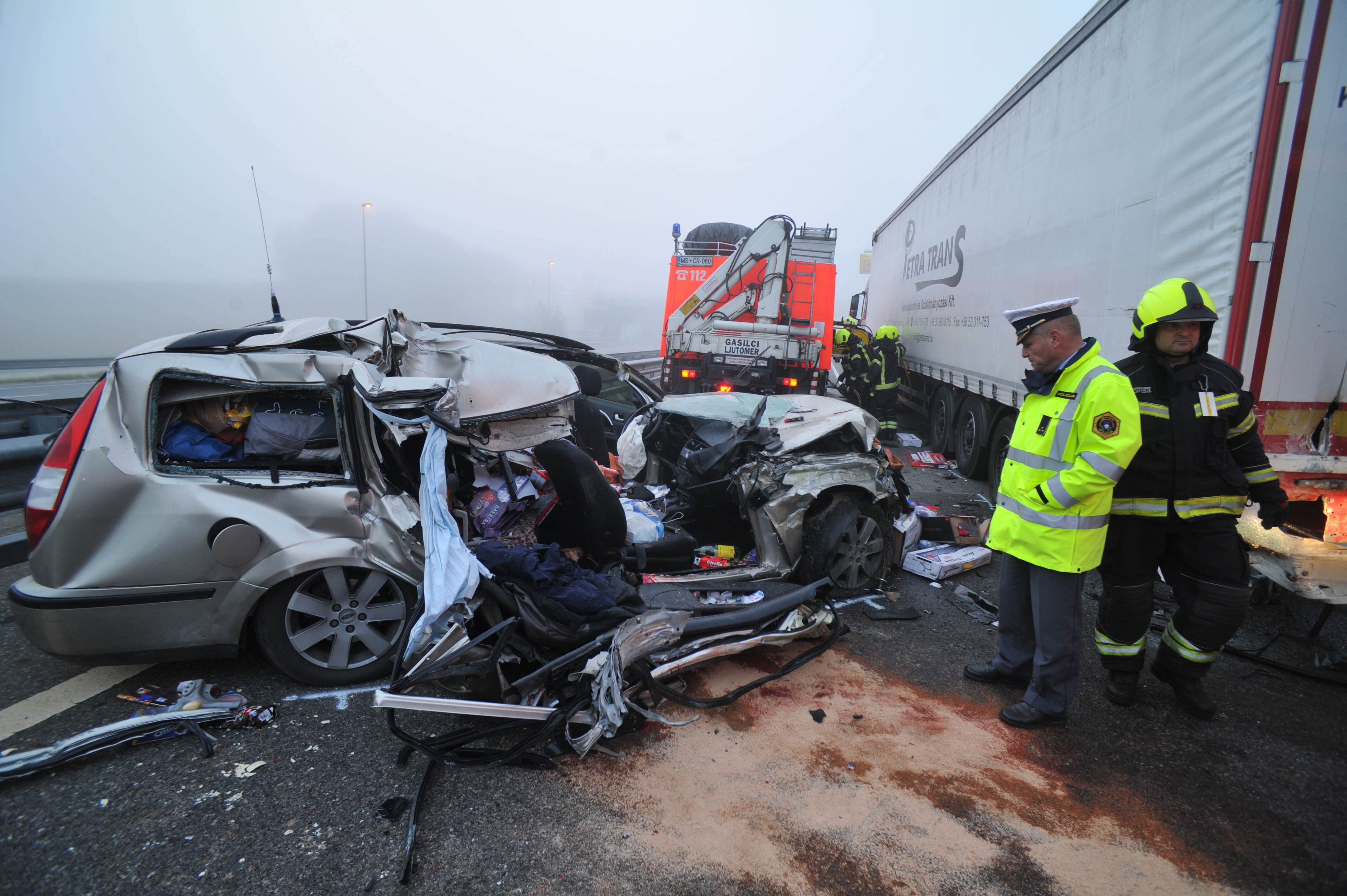 Tragična nesreča se je pripetila 16. oktobra ob pol petih zjutraj pred cestninsko postajo Dragotinci v smeri Lendave. Danes 44-letni Pesti je v gosti megli v tovornjaku vozil vzvratno, ker je zgrešil stezo za cestninjenje tovornih vozil, vanj pa je z osebnim vozilom trčil danes 47-letni Postolati, ki je pripeljal prehitro in s prekratko varnostno razdaljo glede na vremenske razmere. Ob tem je bil Postolati tudi pod vplivom alkohola, saj so mu policisti namerili 0,49 miligrama alkohola na liter izdihanega zraka, prav tako ni bil pripet z varnostnim pasom. Trčenje je bilo tako silovito, da sta sopotnika na sprednjem in zadnjem sedežu v njegovem avtomobilu izgubila življenje. Postolati se je v nesreči lažje poškodoval, Pesti pa jo je odnesel povsem brez poškodb.