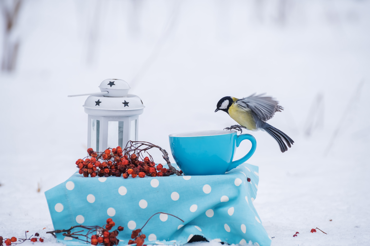 Če zemljo prekriva snežna odeja, imajo ptice omejen dostop do hrane. V vrtove zato postavimo ptičje krmilnice in jih redno polnimo z zrnjem. Za zrnojede ptice, kot so ščinkavec, čižek, dlesk, vrabec, sinica, brglez, grlica, je najlaže kupiti že pripravljeno mešanico sončničnih semen, prosa in semen konoplje. Lahko pa za te ptice pustimo vsako jesen na vrtu nekaj sončnic, da bodo lahko kljuvale semena. Krmilnice je treba redno čistiti in iz njihove notranjosti ter z robov postrgati luščine in umazanijo, saj bi sicer te lahko začele plesneti in takrat pomenijo nevarnost živalim, ki se lahko s takšno hrano okužijo in poginejo. Pticam bodo teknile tudi lojne pogače, ki so pozimi pomemben vir energije. Loj skuhamo in umešamo semena, z zmesjo napolnimo jogurtov lonček in na sredo denimo vrvico in obesimo na drevo.