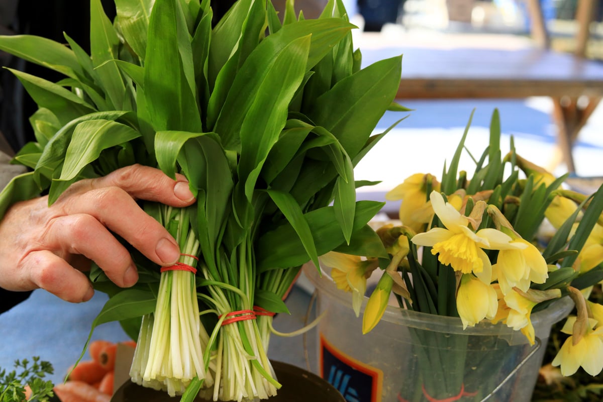 Pomlad je na osrednjo tržnico že prinesla enega najbolj značilnih sezonskih okusov - čemaž. Pri kmetiji Ribič iz Grušove ga prodajajo ob petkih in nedeljah, kupci pa za šopek odštejejo 1,5 evra. Kot pravi Albin Ribič, ga v njihovih krajih raste v izobilju, zato ga v sezoni ne zmanjka. Ribič čemaž nabira ob potoku in na bolj vlažnih območjih. Prav tam so razmere zanj najbolj ugodne. Najraje si ga pripravi v solati. "V solato ga narežeš in ne rabiš česna dodati," pravi.