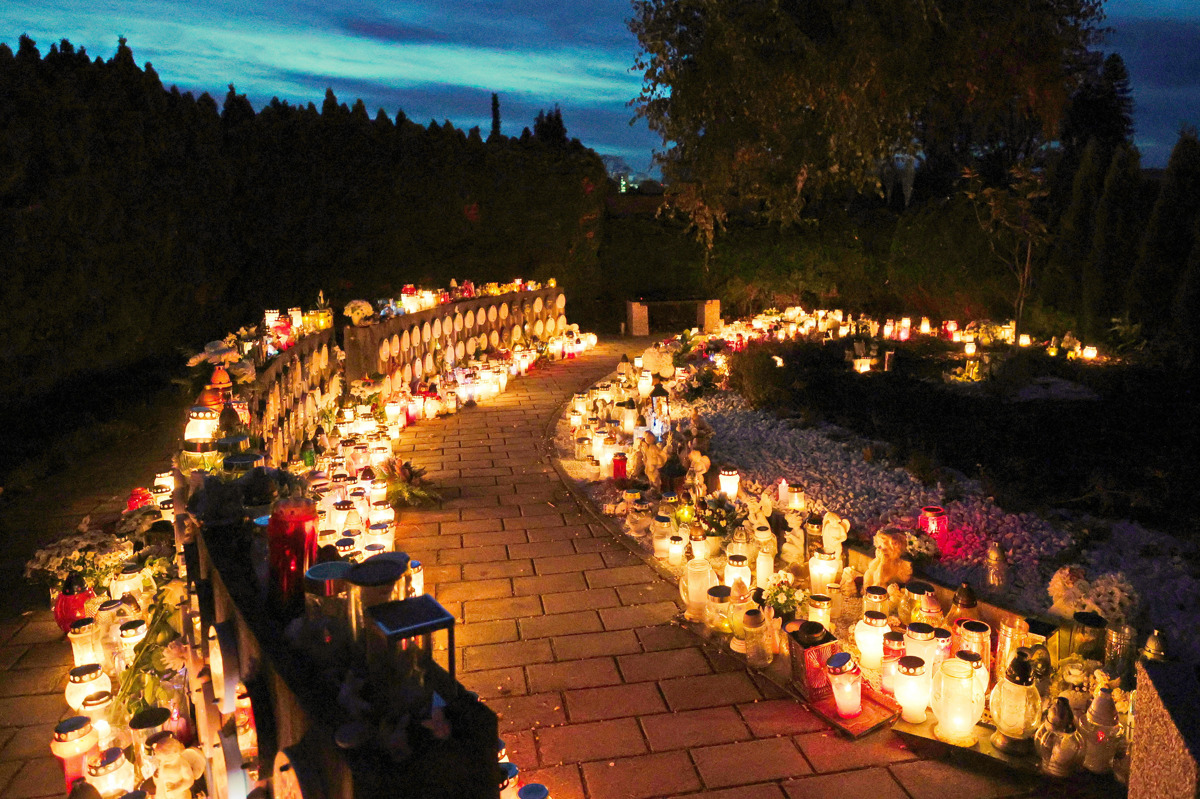 Že tradicionalno so se pokopališča spet napolnila po sončnem zahodu, ko je soj sveč še veliko bolj opazen.