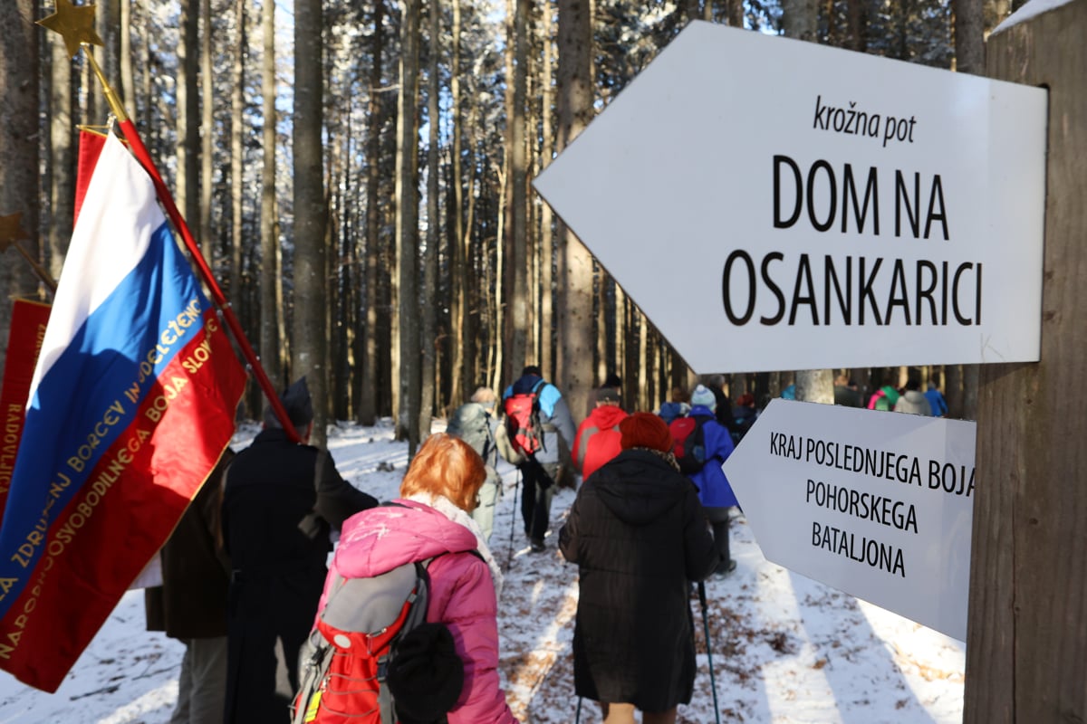 Na Treh žebljih na Osankarici je tradicionalno prvo soboto v letu potekala spominska slovesnost ob 82. obletnici padca Pohorskega bataljona. Kljub mrazu je na s soncem obsijano in s snegom pobeljeno Pohorje prišlo veliko ljudi. Tudi letos večina z avtobusi in avtomobili, nekaj jih je iz Slovenske Bistrice in iz Ruš prišlo peš. Na 25 minut dolgi poti od požganega Doma na Osankaraci do prizorišča poslednjega boja Pohorskega bataljona je hodilo staro in mlado. Od svojcev padlih, politikov, vojakov, policistov, praporščakov, pohodnikov.