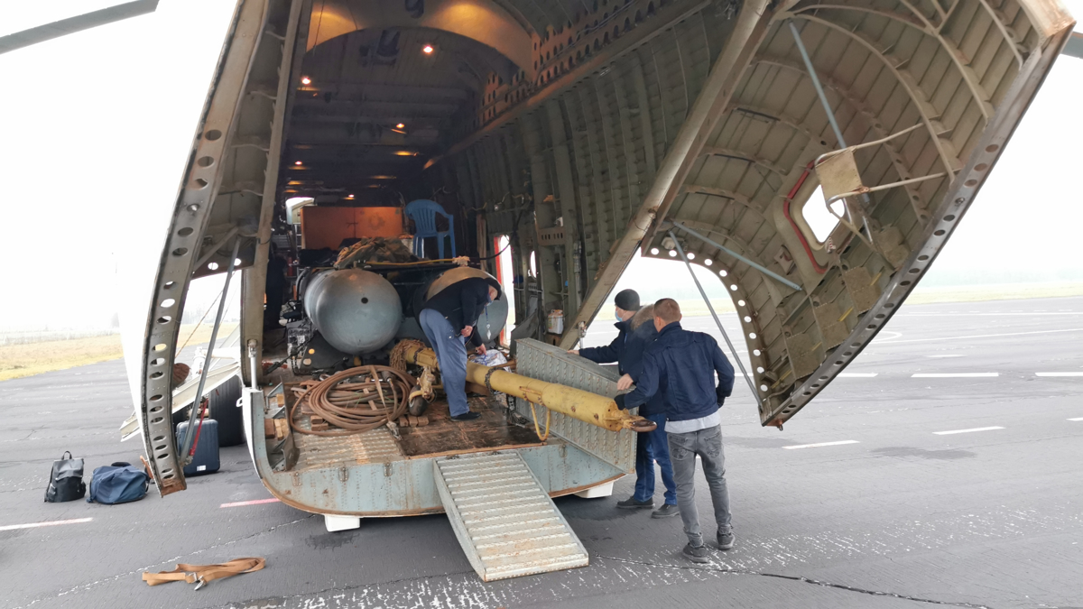 Posadko so iz Kaliningrada s propelersko cessno 208B grand caravan, ki je kot helikopter v lasti družbe Skol Airline, že v petek pripeljali v mesto ob Dravi, kjer so prespali in se s taksiji v soboto zjutraj kmalu po osmi uri odpeljali na tukajšnje letališče. Nemudoma so pričeli v več mesecev parkiranega helikopterja odstranjevati ponjave, v notranjost tovornega prostora zlagati svojo prtljago in že kmalu je sledilo ogrevanje motorjev. Pilot in kopilot nista bila preveč zgovorna, konec koncev sta imela pomembno nalogo preizkusiti delovanje vseh sistemov. Ostali pa smo nestrpno čakali njun ukaz: "potrebujemo gorivo", ki bi pomenil, da je helikopter pripravljen na polet.