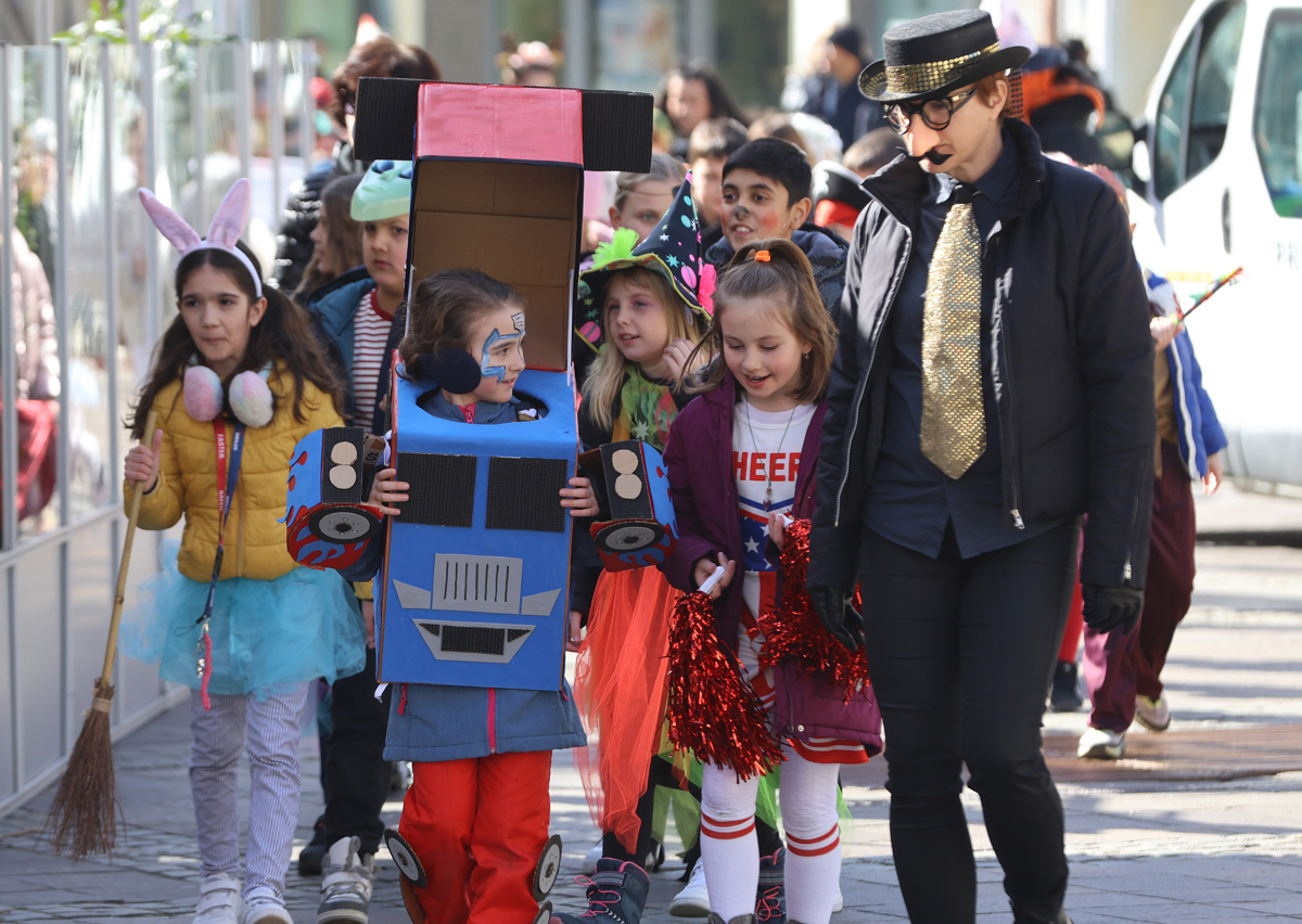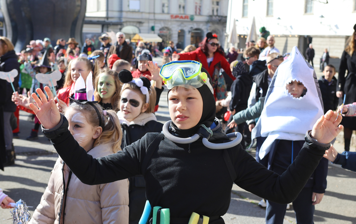 Miške, robotki, krokodili, policisti, superjunaki, strastni navijači, žuželke, rožice, sadje, pa tudi kak potapljač, kavboj, klovn in astronavt ... Pisane in navihane maškare so na pustni torek, čeprav nekoliko manj kot pretekla leta, zavzele Trg svobode.