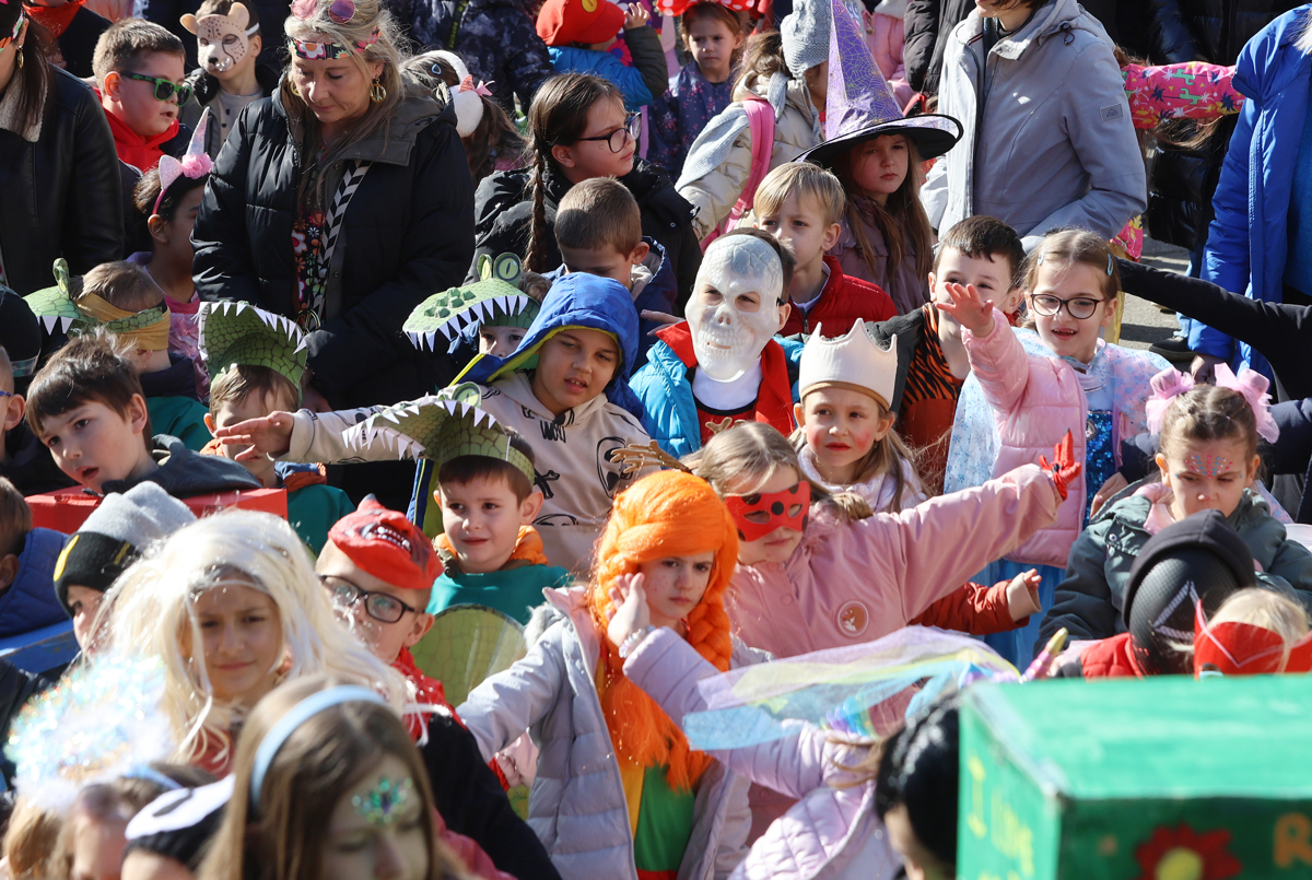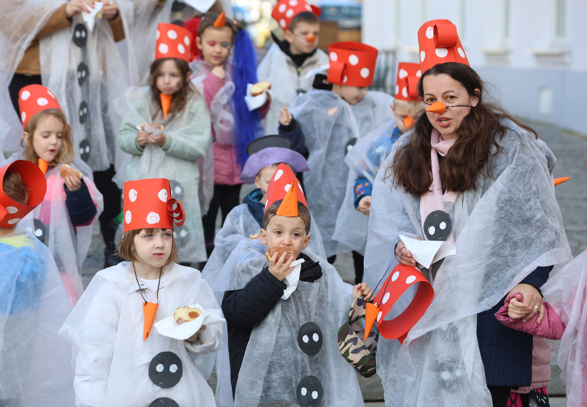 Otroci iz mariborskih šol in vrtcev so se zavrteli ter se s klovneso Tinko Šminko podali na cirkuško potepanje po pravljičnih deželah. Nekateri pa so se prelevili v prava pravljična bitja. Skoraj neizogibno je bilo, da otroci iz Vrtca Tezno, enote Mišmaš, ne bi izbrali teme pravljice Pekarna Mišmaš. Tako kot v zgodbi je Mišmaš, možiček z dolgimi črnimi brki, vodil bele, sive, črne in rumene miške, ob katerih niso manjkale vaščanke, ki kupujejo kruh, mačka in Jedrt. "Otroci so nad pustovanjem izjemno navdušeni. Tako ga vzamejo za svojega, da v njem neizmerno uživajo in se sprostijo," je povedala Jadranka Zajec, ki se je preoblekla v Jedrt.