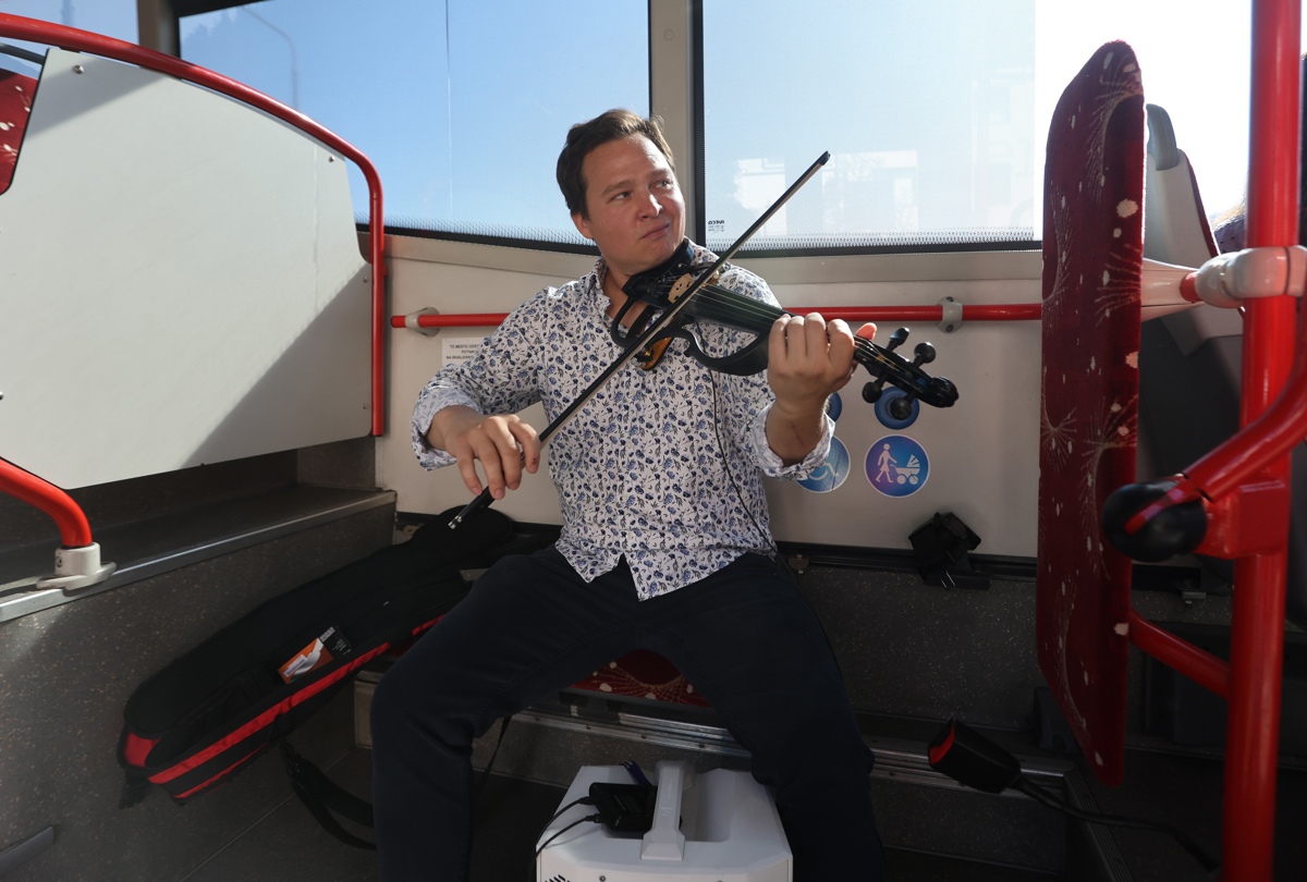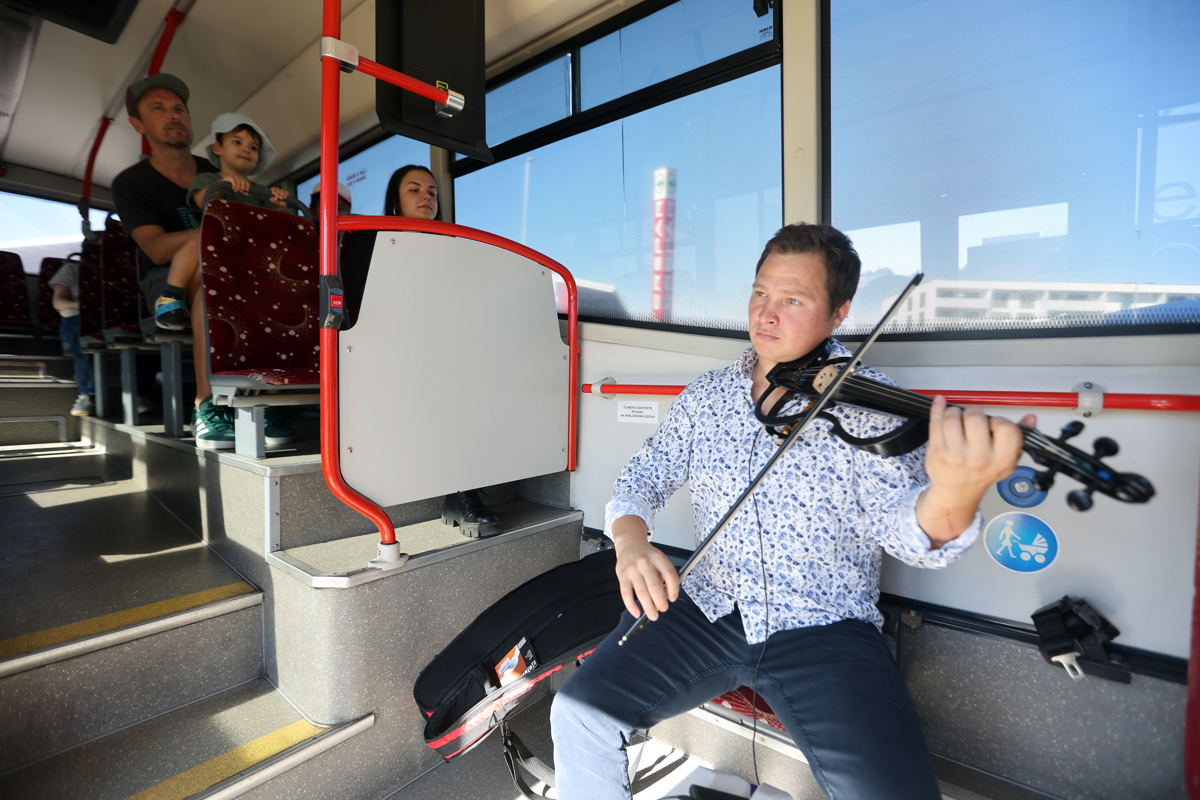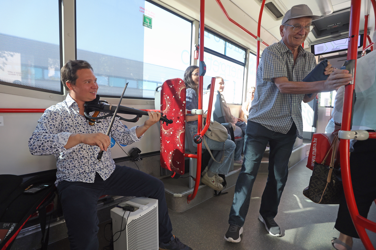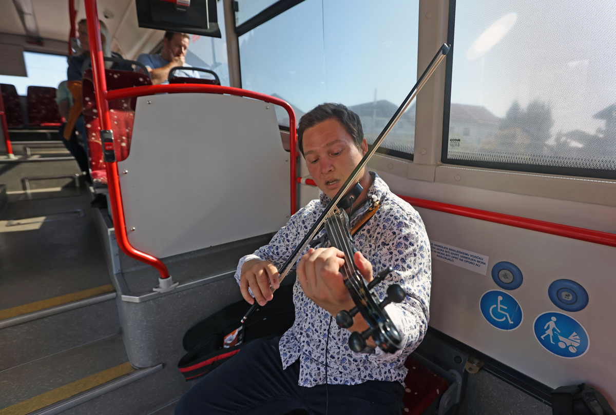 Kdor je danes dopoldne stopil na Marpromovo krožno avtobusno linijo G3, je bil tako nemalo presenečen. Zaobjela ga je melodija violinista Matjaža Antončiča, ki je avtobus spremenil v koncertno dvorano na kolesih.