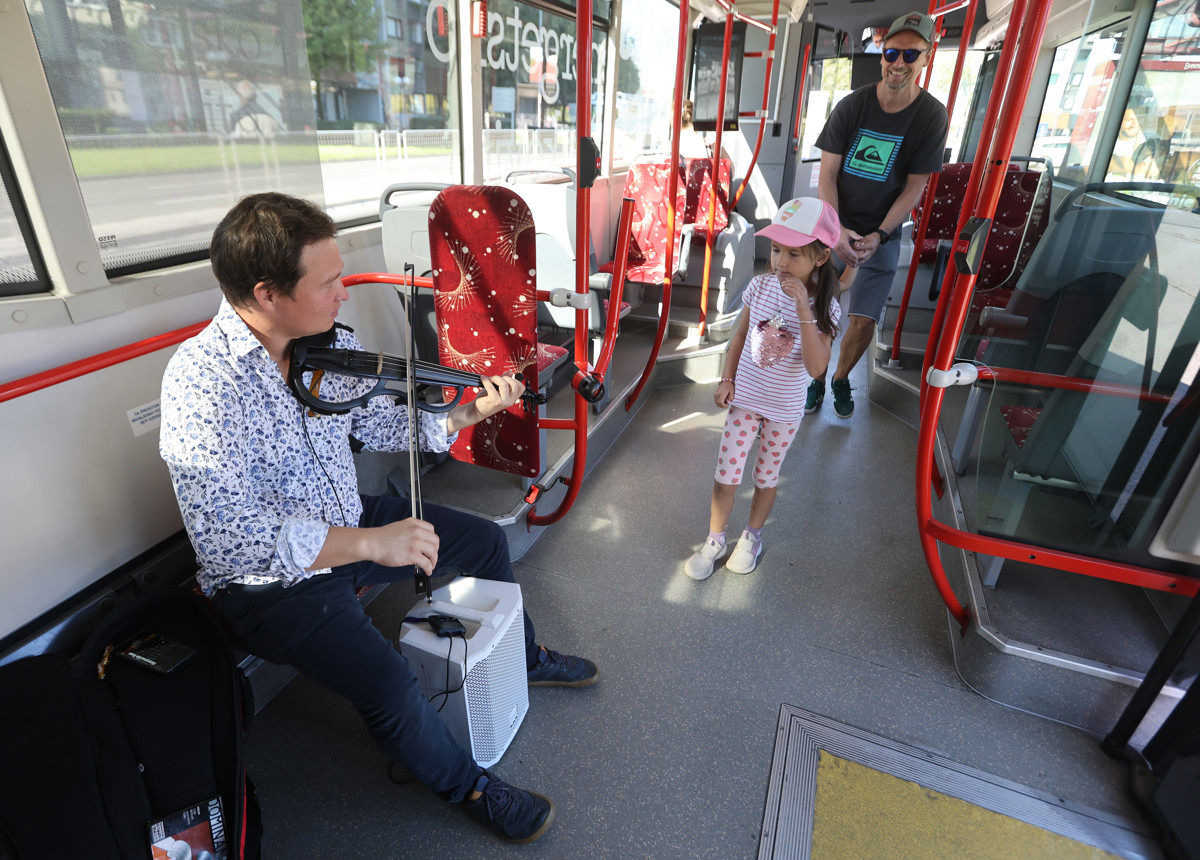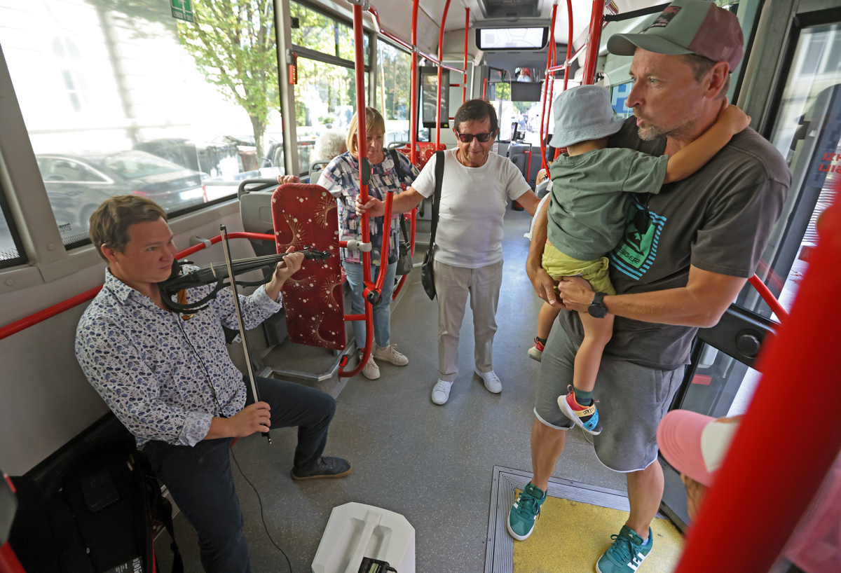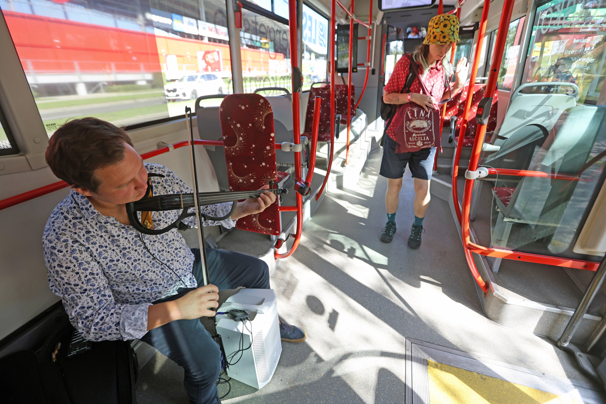 Umetniški nastopi na javnih prevoznih sredstvih v tujini niso nič nenavadnega, a Mariborčani in Mariborčanke so praviloma za trenutek zastali, nato pa so se jim usta razlezla v širok nasmešek. Nekateri so zrli skozi okno, a z nogo udarjali po taktu, drugi so umetnika snemali, tretji mu ploskali. Povprečni čas gledanja v zaslone se je vsem po vrsti vsaj malo skrajšal.