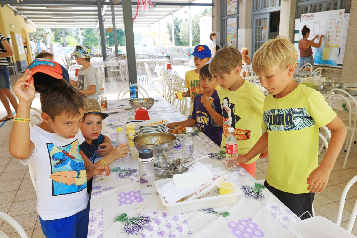 "Otroci gredo najraje na plažo, kjer se kopajo in igrajo. Vedno so z njimi naši zunanji sodelavci, ki z otroki izvajajo razne delavnice, kot so šahovski krožek, šiviljske in kulinarične delavnice. V vsaki izmeni je ena delavnica, ki najbolj pritegne otroke. V kulinarični delavnici je zmanjkalo prostora za prijave. Vsi so želeli peči pico," o aktivnostih pove Gabor. Za otroke skrbi okoli 40 vzgojiteljev, je pa število odvisno od velikosti izmene. Za vsakih osem do deset otrok je zadolžen en vzgojitelj.
