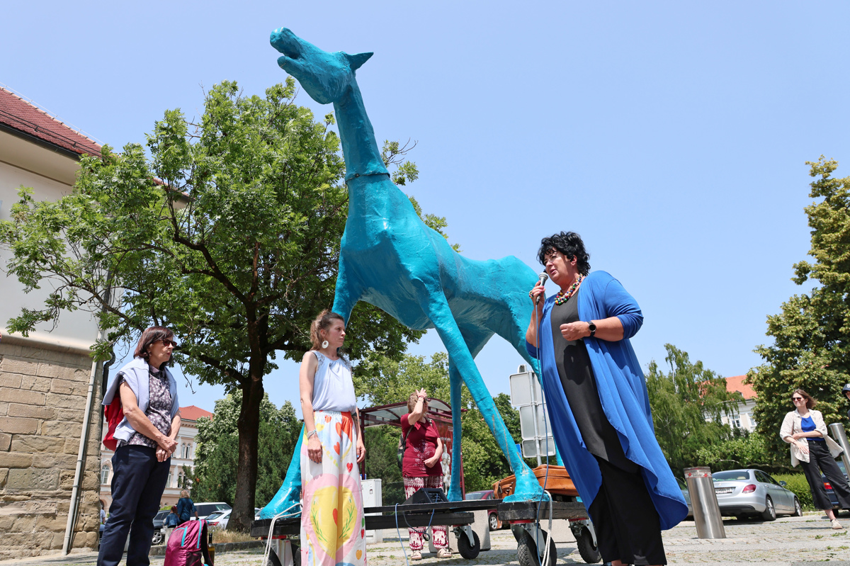Marinka Lešnik je bila v Socialnovarstvenem zavodu Hrastovec 33 let. Odvzeta ji je bila poslovna sposobnost in s tem tudi možnost skrbi zase. "Kmalu bo osem let, odkar je uspela preselitev, ker smo naredili načrt selitve iz institucije v skupnost. Za to gre zahvala Mestni občini Maribor, Mestni občini Celje in tudi Javnemu medobčinskemu stanovanjskemu skladu Maribor, kjer imajo prav tako posluh za to," je Simona Ratajc, nekdanja delavka Centra za socialno delo Maribor, povedala na Trgu svobode, kjer je modri konj Marco Cavallo kot simbol deinstitucionalizacije danes začel svojo pot po Mariboru. "Čeprav sem bila toliko časa tam, nisem imela nobene psihiatrične obravnave, nobene terapije," je Lešnikova še povedala o sebi in izpovedala tudi nekatera neprimerna ravnanja tam zaposlenih, ki jih je bila deležna.