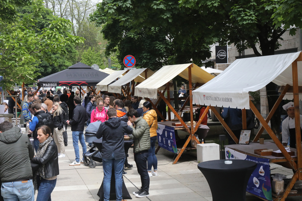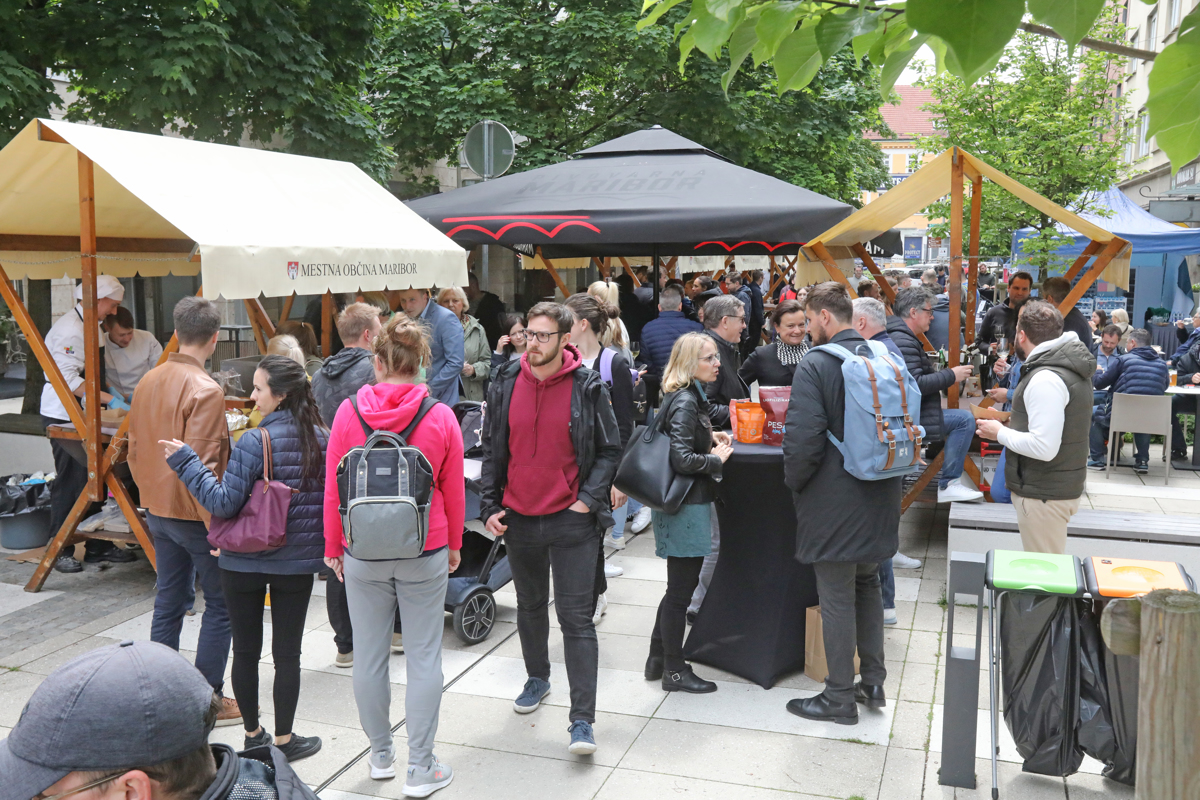 Za lačne želodce so pripravili pražen krompir z vloženo zelenjavo in svinjsko pečenko, šunko, pečeno v krušnem testu s hrenom in hrenovo peno, zanimiva jed pa je tudi ocvrt piščanec v hišni štručki s sočno solato, tradicionalno je na voljo praženec z jagodami in jabolki, za vegetarijance pa golaž iz čičerike. Čičerika na festivalu lokalne hrane? "Čičerika sicer res ni iz Slovenije, a smo jo namenoma vključili, ker je bila čičerika na Dravskem polju stalnica pred drugo svetovno vojno. To posebnost so k nam prinesli primorski priseljenci in sodelavka, ki ima ekološko kmetijo, je našla zapise njene babice, ki je trdila, da je čeka, tako so imenovali čičeriko, bila ves čas na vrtu in so jo sadili na Dravskem polju. Čičerika je bila pomemben vir proteinov, potem jo je zamenjal fižol in bob," pojasni Mojca Polak, predavateljica na Višji strokovni šoli za gostinstvo in turizem v Mariboru. Hrano spremljajo vina lokalnih pridelovalcev.