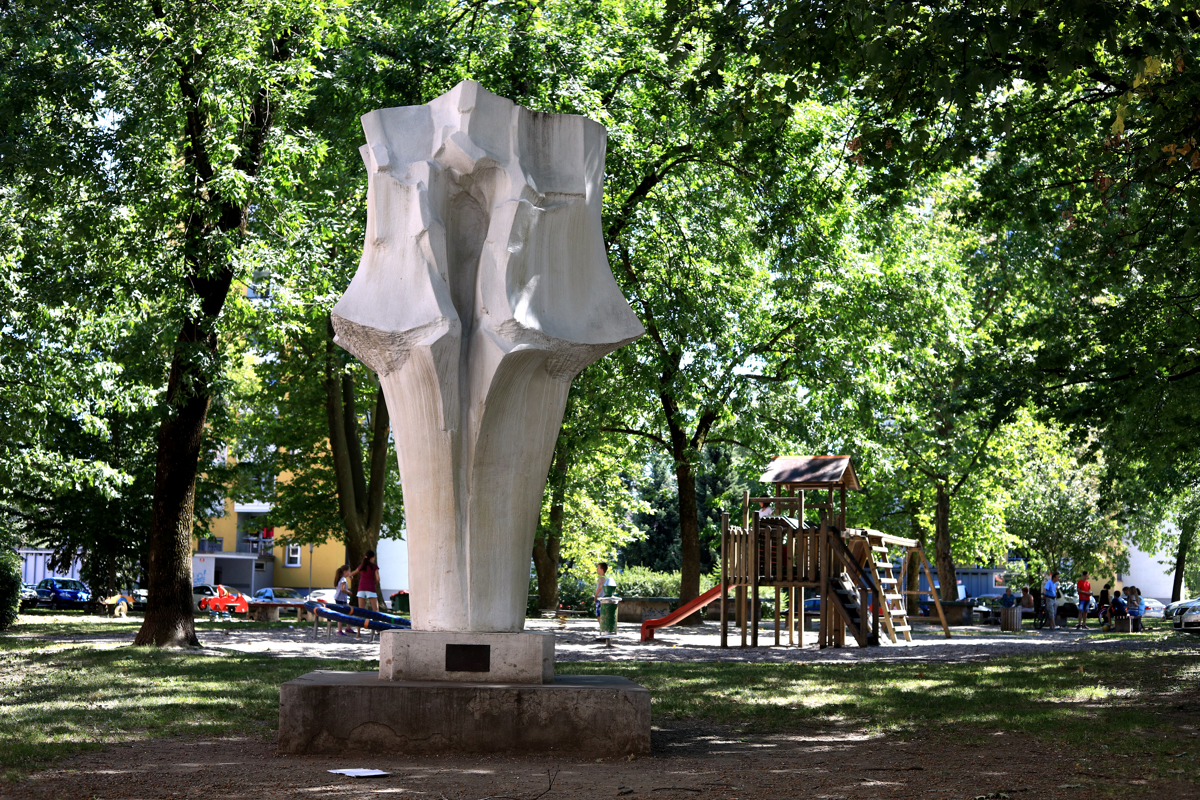 "Zakaj beton? Zato, ker je bil Maribor po drugi svetovni vojni industrijsko mesto, ki je hitro raslo. Bilo je veliko priložnosti za zaposlitev in v mesto se je priseljevalo veliko ljudi. Posledica tega je bila, da se je gradilo veliko blokovskih naselij, vrtcev, šol in zdravstvenih domov. Gradbena podjetja so bila močna," Strnadova pojasnjuje, da spodbuda uporabiti v oblikah forme vive beton in estetizirati okolje z abstraktno umetnostjo izvira iz mariborskih gradbenih podjetij, recimo Stavbarja, ki jih danes ni več.