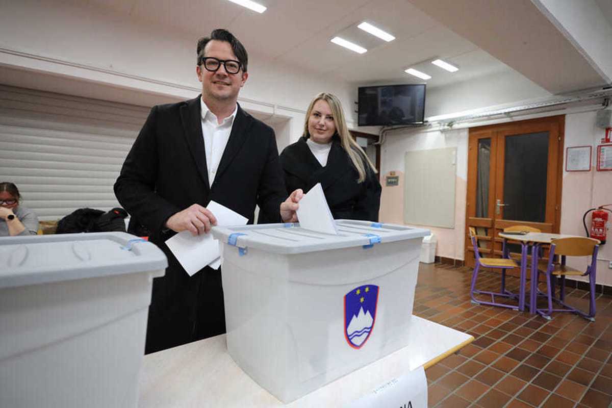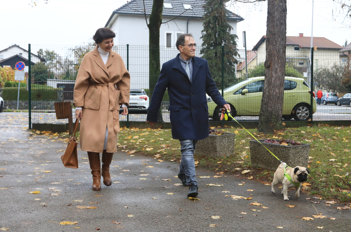 "Štajerska se veseli," je zapisal Dejan Kaloh (SDS), ki ga je na volišču spremljala žena Natalia Kaloh Vid.