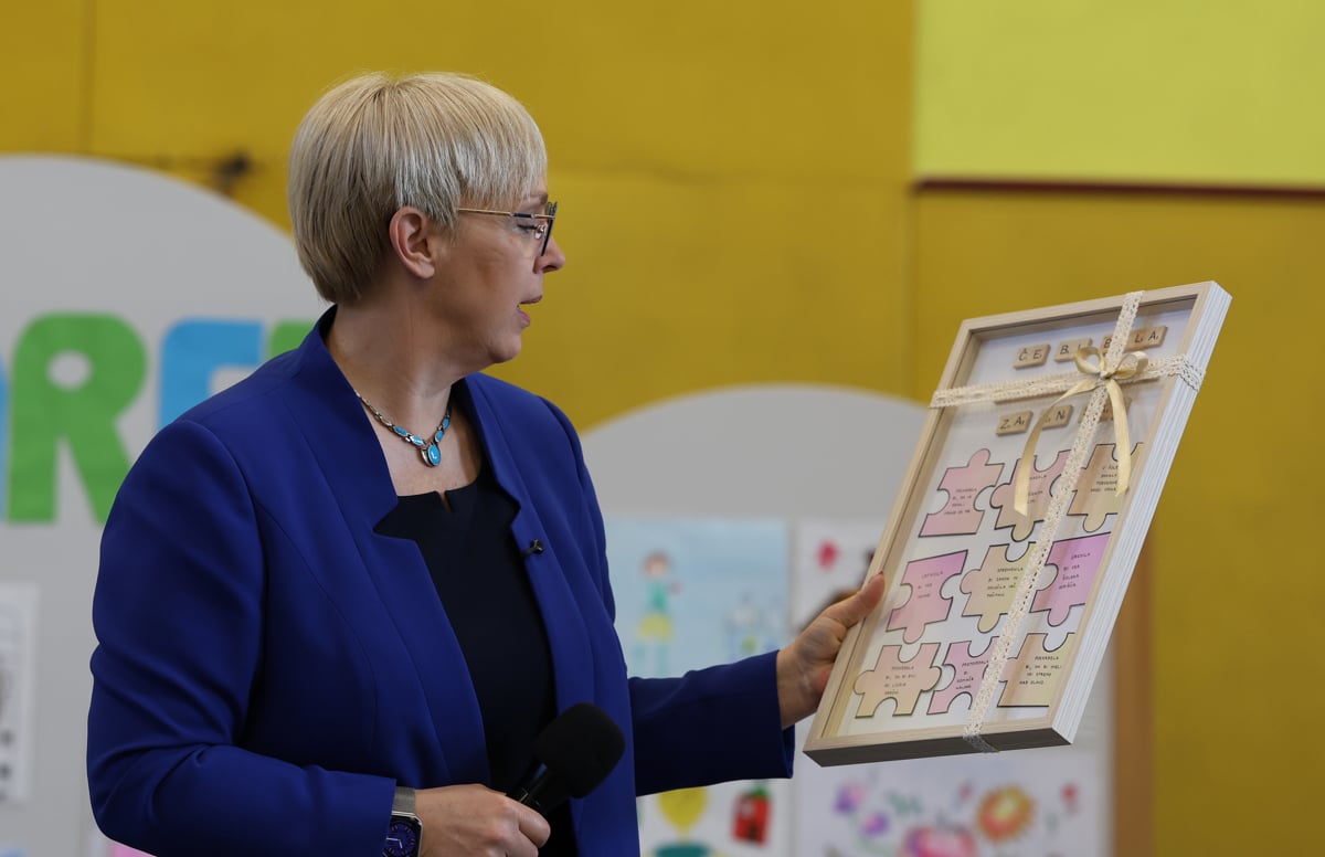 Na koncu so ji učenci povedali še, kaj bi oni naredili, če bi bili predsednik ali predsednica za en dan. Od miru na svetu do pomoči živalim, toboganov iz vsake učilnice do prepovedi domače naloge. Da tega ne more odločiti, jim je dejala, nato pa učitelje prosila, naj jim dajo vsaj manj nalog, da bo več časa za igro in sprostitev. "Obremenjenost je ogromna, morda tudi zato več stisk, ker imajo premalo časa za sprostitev," nam je razložila. Otrokom pa zabičala, naj med poukom nimajo telefonov. "To vam ukazujem kot vrhovna poveljnica vojske," je v smehu dejala in z vsemi v šoli za konec naredila seveda tudi en skupinski selfi.
