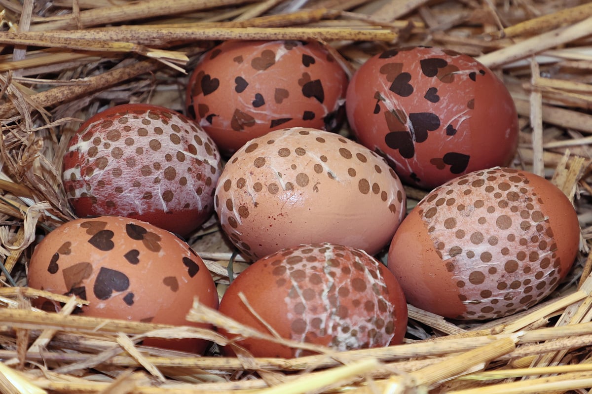Tokrat so krajani Porčičev poskrbeli za pirhe, ki so jih gospodinje pobarvale vsaka po svoji metodi - bodisi s čebulnimi olupki bodisi s kuhanjem v rdečem vinu, ki jajce ovije v bleščeč ovoj, ali pa servietno tehniko. Potrudili so se tudi z nojevim jajcem, ki so ga odeli s kvačko z motivom grba Svete trojice. Vse skupaj pa razstavili v konstrukciji iz lesenih zabojčkov.