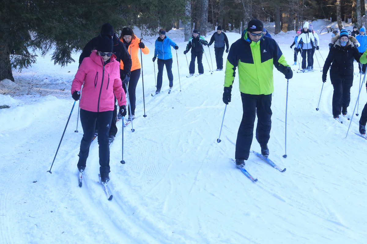 Dober obisk je bil tudi v nedeljo na Arehu, kjer je približno 35 prijavljenih spoznavalo osnove teka na smučeh. Foto: Igor NAPAST