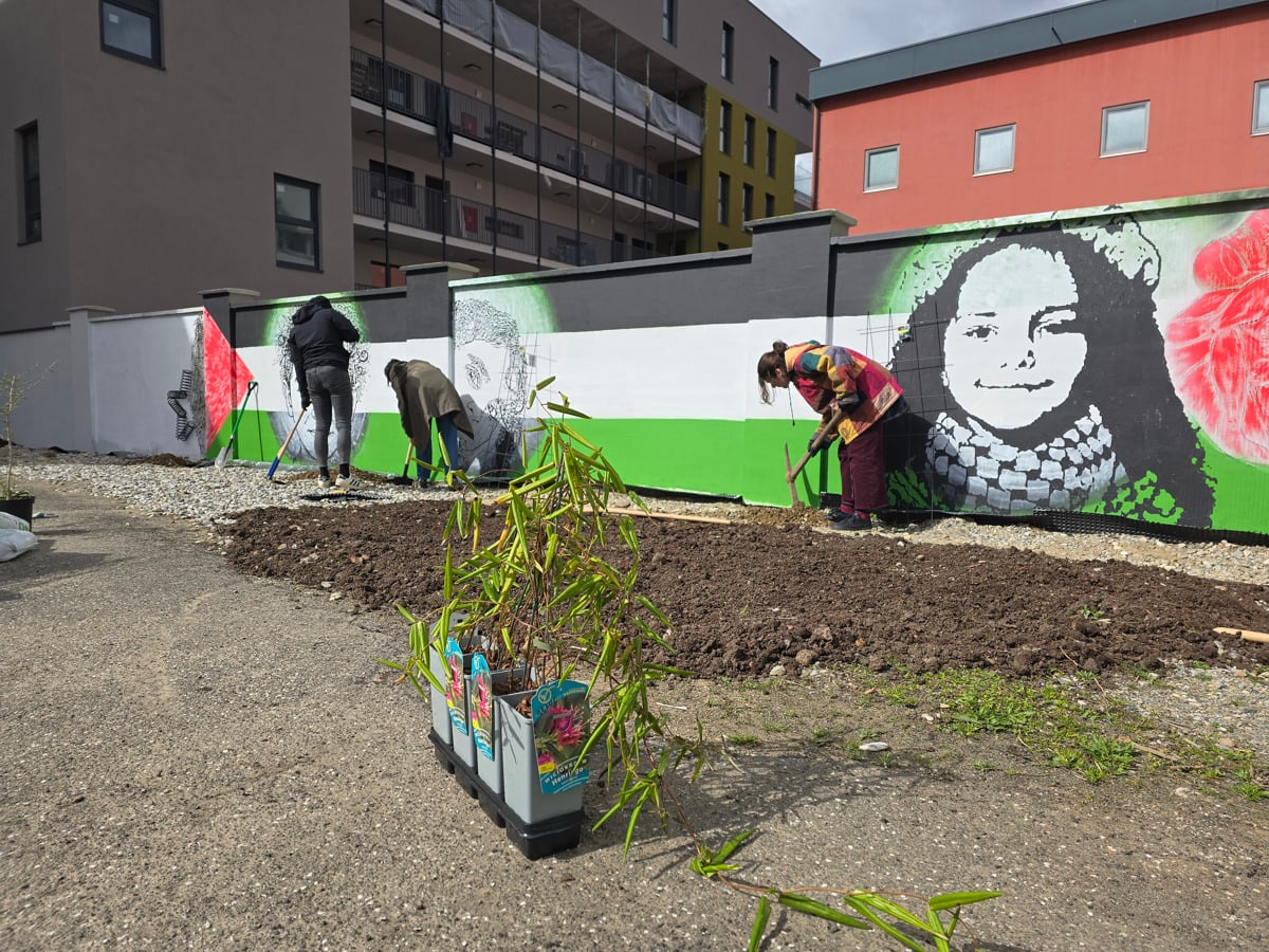 "Zavod za varovanje kulturne dediščine (ZVKD) je pritisnil na investitorja, občina pa žal ne. Ker ZVKD nima vzvodov za sankcioniranje investitorjev, ki kršijo zakonodajo, smo se odločili zid iz betonskih zidakov, ki so ga postavili namesto historičnega opečnatega zidu, ozeleniti ter poslikati z družbeno-političnim sporočilom ter nanj namestiti instalacijo. Že čez nekaj tednov nas bo tako v Pekarni razveseljevalo na novo razraščeno zelenje, ki bo opozarjalo na pomen zelenih javnih površin namenjenih brezplačnemu druženju v času pospešene gentrifikacije mesta. S podobami palestinskih otrok, predvsem s strani Izraela umorjene Hind Rajab, pa želimo opozoriti na nujnost upora proti vsem okupatorjem, agresorjem, izvrševalcem genocida in njihovim pomočnikom," zapišejo pekarnarji.