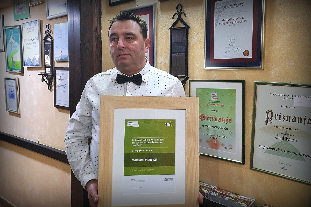 Največji strokovni dogodek na področju turizma, Dnevi slovenskega turizma, je lani decembra potekal virtualno. V uvodnem delu in na okrogli mizi so osvetlili ključne izzive globalnega in slovenskega turizma v času koronavirusa s pogledom naprej, v zaključnem delu pa so bila podeljena najvišja priznanja v slovenskem turizmu. Priznanje za življenjsko delo v gostinstvu, ki ga podeljuje Sekcija za gostinstvo in turizem pri Obrtno-podjetniški zbornici Slovenije (OZS), je za aktivno povezovanje gostincev v podravski regiji prejel Marjan Vidovič, ki v Malečniku vodi družinsko podjetje Motel in pizzeria Črni baron.