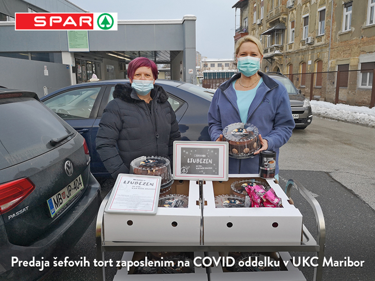 V podjetju SPAR Slovenija so se odločili, da obdarijo zdravstvene delavce na covid oddelkih v sedmih slovenskih bolnišnicah. V zahvalo so obdarili zaposlene v UKC Ljubljana in UKC Maribor ter v splošnih bolnišnicah na Jesenicah, Novem mestu, Celju, Murski Soboti in Izoli. Podarili so jim šefove torte, ki so nastale po recepturi chefa Fakuča, ročno pa so jo pripravili slaščičarji in slaščičarke Pekarne SPAR.