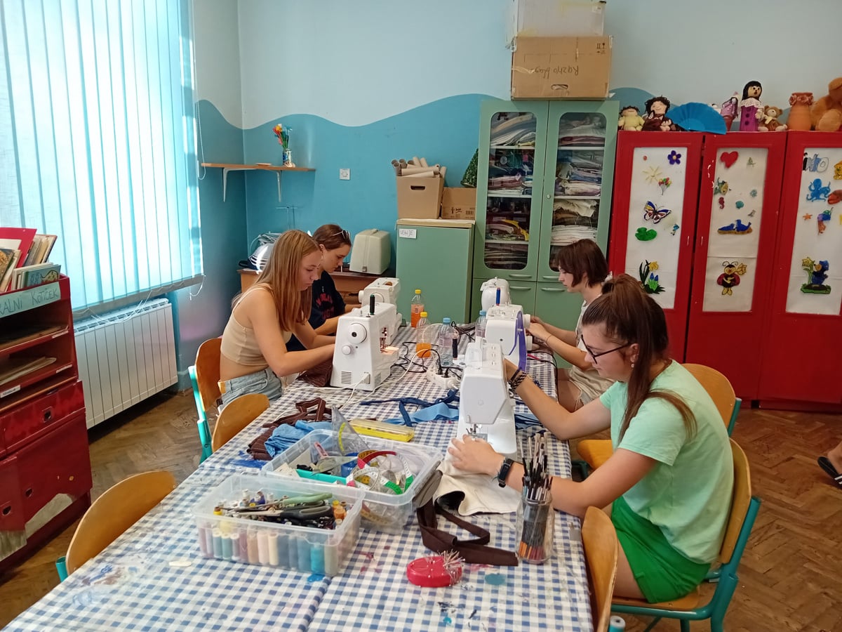 Za mladostnike, starejše od 15 let, so tudi med letošnjimi počitnicami v Domu ustvarjalnosti mladih (Dum) pripravili začetni tečaj šivanja. Pet deklet med 14. in 17. letom je pod vodstvom mentorice Nine Rozine spoznavalo osnove te nadvse uporabne veščine. "Letošnja skupina je čisto začetniška, zato je edino pravilno, da jih naučim osnove. Te je namreč treba znati, da lahko nadgrajuješ svoje izdelke," je povedala Nina Rozina. "Najprej je treba razumeti, kako stroj deluje, kako se napelje nit, kakšni šivi obstajajo, za kaj so gumbi na stroju. Vse razlagam postopoma, to primerjam s šolo vožnje, kjer tudi ne gremo kar takoj na avtocesto." Za začetek so dekleta izdelovala vajenice in preproste pravokotne izdelke, kot so torbe, blazine, okrasne elastike za lase. Material so dobile v Dumu, kjer ga imajo vedno nekaj na zalogi. "Materiala je na svetu preveč, ker se izdeluje ogromno oblačil. Tudi v Sloveniji, posebno v Mariboru, smo imeli ogromno tekstilne industrije in to blago se v nekaterih domovih še kopiči, ker ga hranimo, da bi nekoč nekaj ustvarili iz njega. Če ga damo tečajnicam, ubijemo dve muhi na en mah: blago je kakovostno, s takim pa je prijetno delati, obenem začetnikom ni treba vsega kupovati, saj mogoče ne bodo nikoli več šivali," razlaga Nina Rozina.