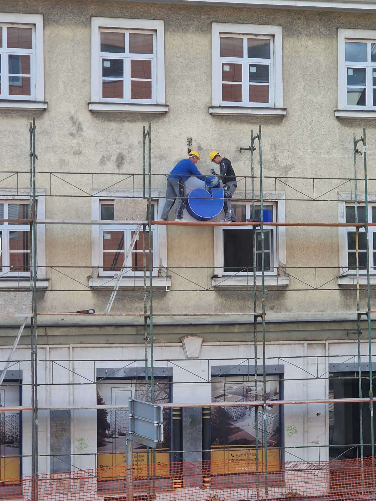 Delavci so v sklopu del obnove fasade začeli odstranjevati prepoznavni znak s črko J, simbol nekdanjega mariborskega podjetja Jeklotehna Maribor. Bralka, ki je bila na sprehodu, je opazila dogajanje in o tem obvestila muzej. "Pred dvema urama nas je poklicala sprehajalka, da odstranjujejo znak. Ker imamo v muzeju zbirko Spomenik mariborski industriji – Industrijski Maribor v 20. stoletju, nas je vprašala, ali bi nas to zanimalo," je povedal kustos Domen Kodrič, ki se je nemudoma odpravil na teren, kar s kolesom. Na Partizanski je ujel zadnje trenutke odstranjevanja. Znak, velik približno meter krat meter, je bil nameščen na obeh straneh objekta. Ena stran se je pri demontaži žal razbila, drugo pa so uspeli delavci večinoma ohraniti. "Videti je bilo, da je znak namenjen odvozu med odpadke, zato sem prosil, ali ga lahko prevzamemo. Brez težav so se strinjali," je povedal Kodrič. Znak sedaj čaka na dvorišču, da ga pridejo iskat s kombijem. "Pomembno je, da smo ga sploh uspeli rešiti," pravi Kodrič.