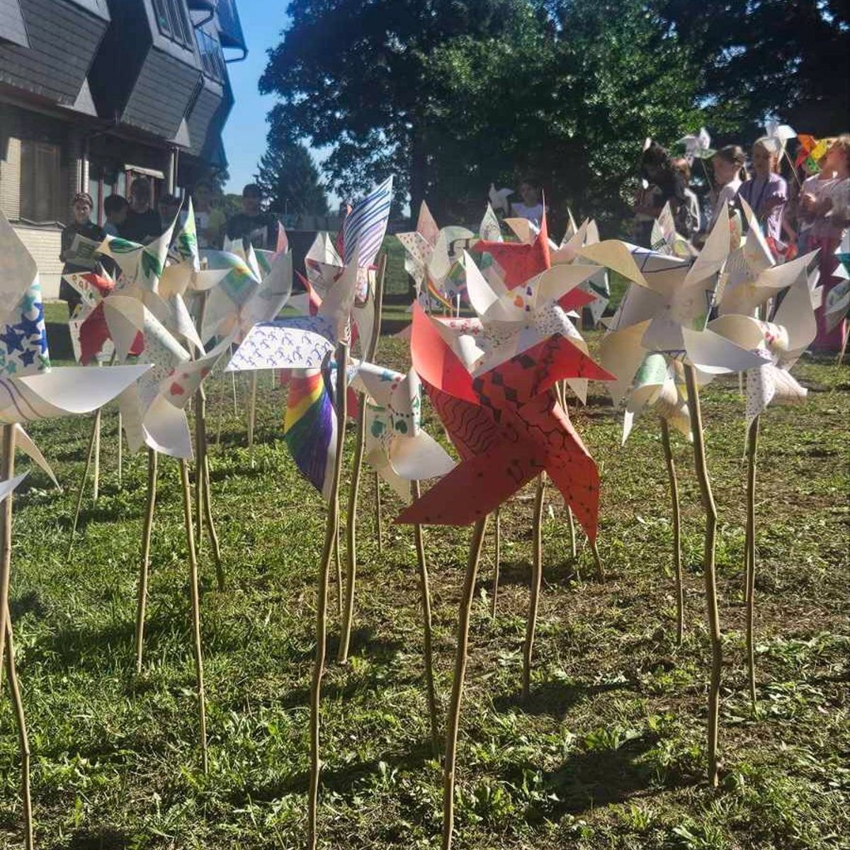 Letos je prostor za vetrnice odstopila OŠ Maksa Durjave. Obiskala jo je mariborska podžupanja Davorka Pregl in skupaj z učenci zapičila vetrnice miru.