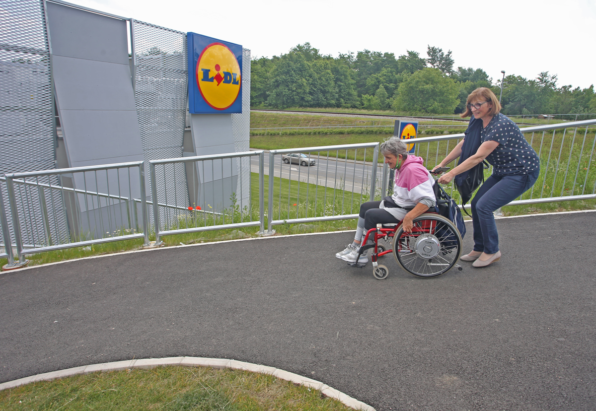 Tako smo ob klepetu prispeli do nove klančine proti nadvozu nad Titovo cesto, ki po brežini vodi do Lidlove trgovine v bližini Europarka. "Ne morem gor brez pomoči, ker je prestrmo. Na drugi strani proti Lidlu pa se dol sploh ne upam spustiti sama ... Zakaj so sploh delali klančino, lahko bi naredili dostop do Lidla neposredno s Titove ceste," se čudi.
