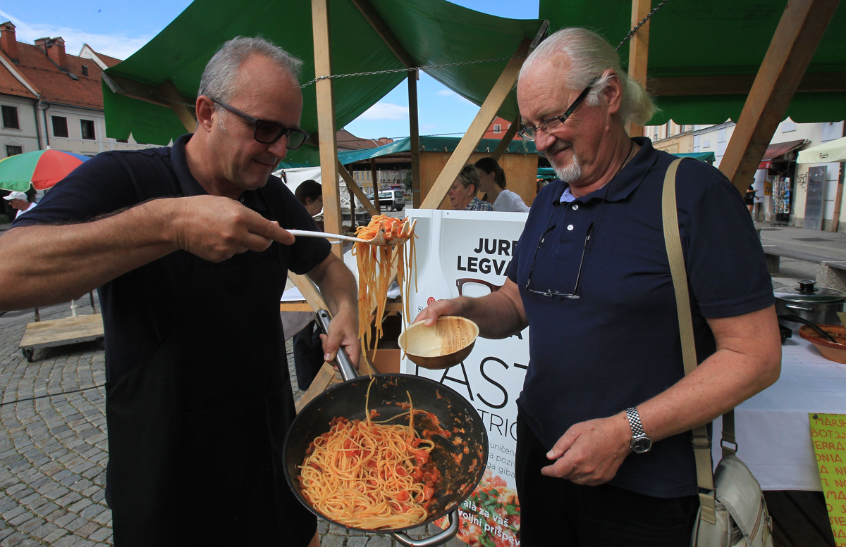 Tako je Jure Legvart (levo) leta 2016 s pašto po amatričansko zbiral denar za Amatrice, ki ga je potres skoraj v celoti uničil.