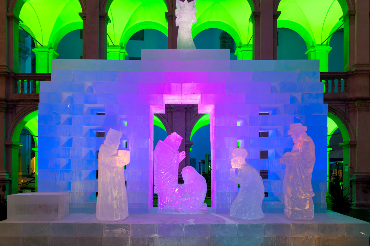 Edinstvena, čeprav minljiva umetnina: ledene jaslice, sklesane iz 35 ton ledu