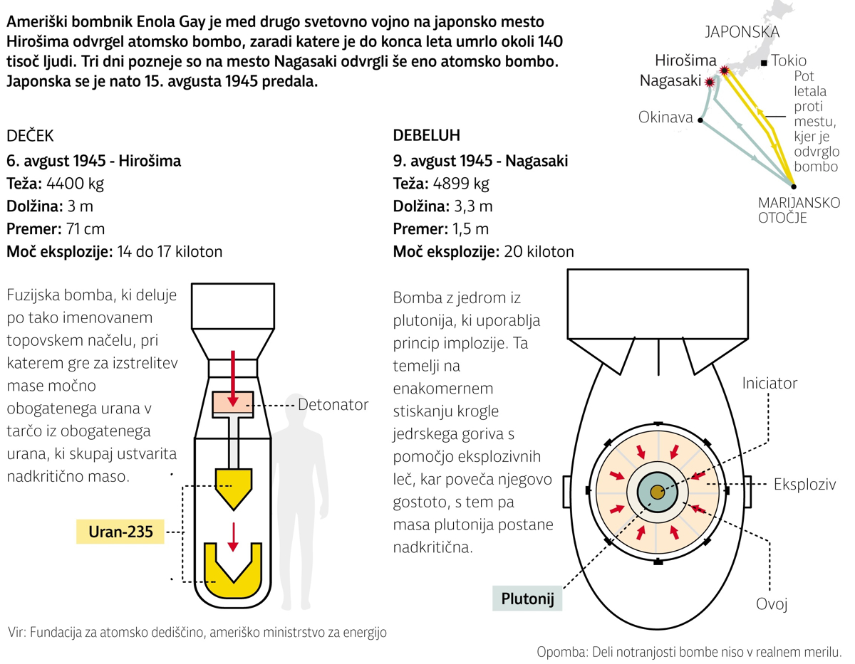 Danes mineva natanko 75 let, odkar je nad japonsko Hirošimo eksplodirala prva atomska bomba. Američani, ki so želeli na ta način s čim manj lastnimi žrtvami končati drugo svetovno vojno, so naslednjo odvrgli tri dni kasneje še na Nagasaki in poslali v smrt zaradi eksplozije ali kasnejših posledic opeklin in radioaktivnega sevanja več kot 200 tisoč japonskih civilistov in le malo vojakov. Toda to je le podatek do konca leta 1945, saj so zaradi radiacije ljudje umirali še desetletja. Trenutno naj bi bilo na Japonskem živih še okoli 135 tisoč ljudi, ki so preživeli jedrska napada.