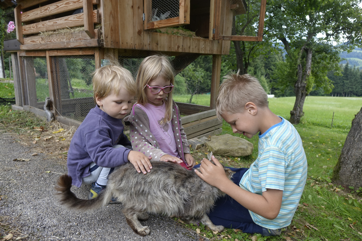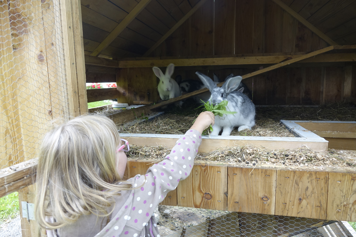 Na kmetiji tete Lene lahko otroci hranijo domače živali.