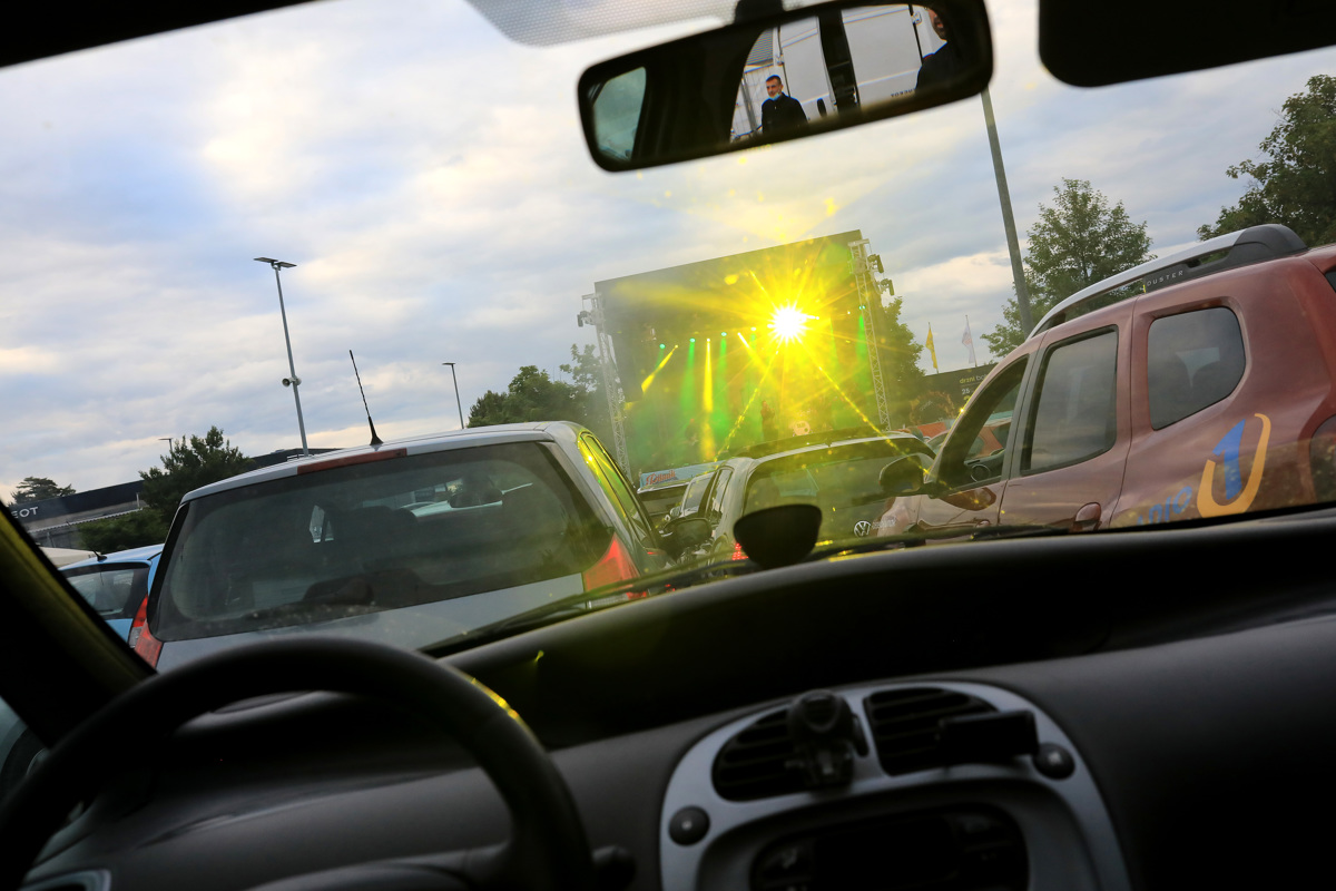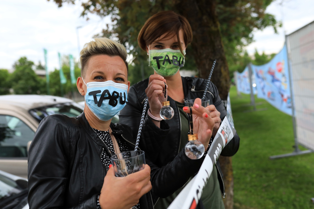 Bil je sobotni večer. Idealen za koncert. Le, da tokrat za prvi drive in koncert v Sloveniji, ki ga je zakrivil koronavirus. Koncert skupine Tabu v Ljubljani. Namesto v dolgi koloni obiskovalcev, ki bi se ob običajnem koncertu vila do vstopa na koncertno prizorišče, smo se udobno pripeljali na parkirišče Centra Vič, kjer so nas pozdravile simpatične hostese na kotalkah in v kratkih hlačah. V roke smo dobili navodila, nato pa nas je varnostnik usmeril na naše parkirno mesto. V nasprotju z običajnimi pravili parkiranja, kjer mora šofer čim bolj pravilno zapeljati avto na parkirni prostor, je bilo tokrat potrebno parkirati nekoliko postrani. Ob nekaj navodilih, mi le uspe. "Šele zdaj vidim, v čem je fora," rečem varnostniku, ko mi končno potegne, da je smisel tovrstnega parkiranja, da vidim direkt na odrsko prizorišče, pa čeprav sem šele v šesti vrst.