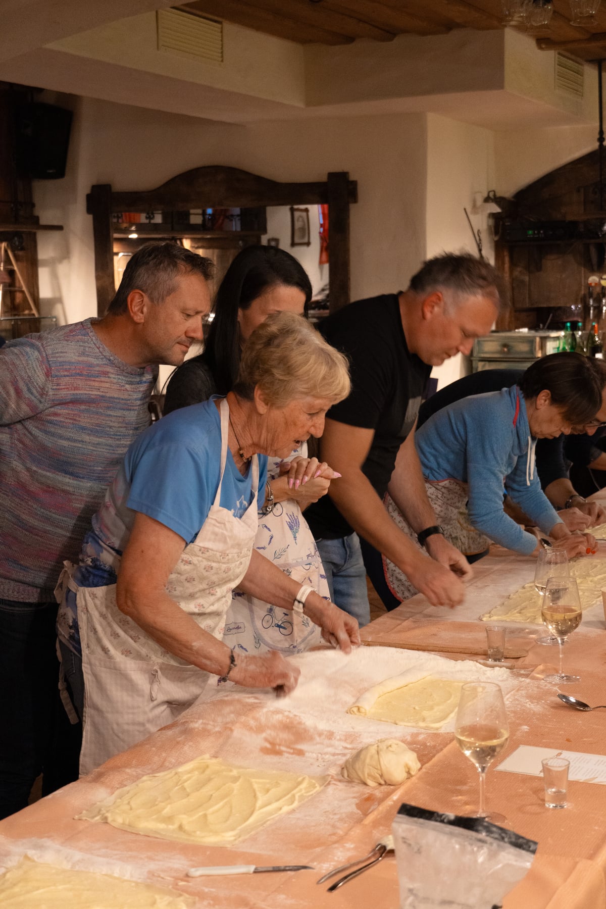 Na delavnici, ki jo vodi Tonka Zadnikar ali njena vnukinja, naša nekdanja smučarka Meta Hrovat, se v sproščenem vzdušju naučite pripraviti tradicionalne gorenjske štruklje in druge načine uporabe vlečenega testa, od peke kruha do priprave ajdovih krapov in žgancev.
