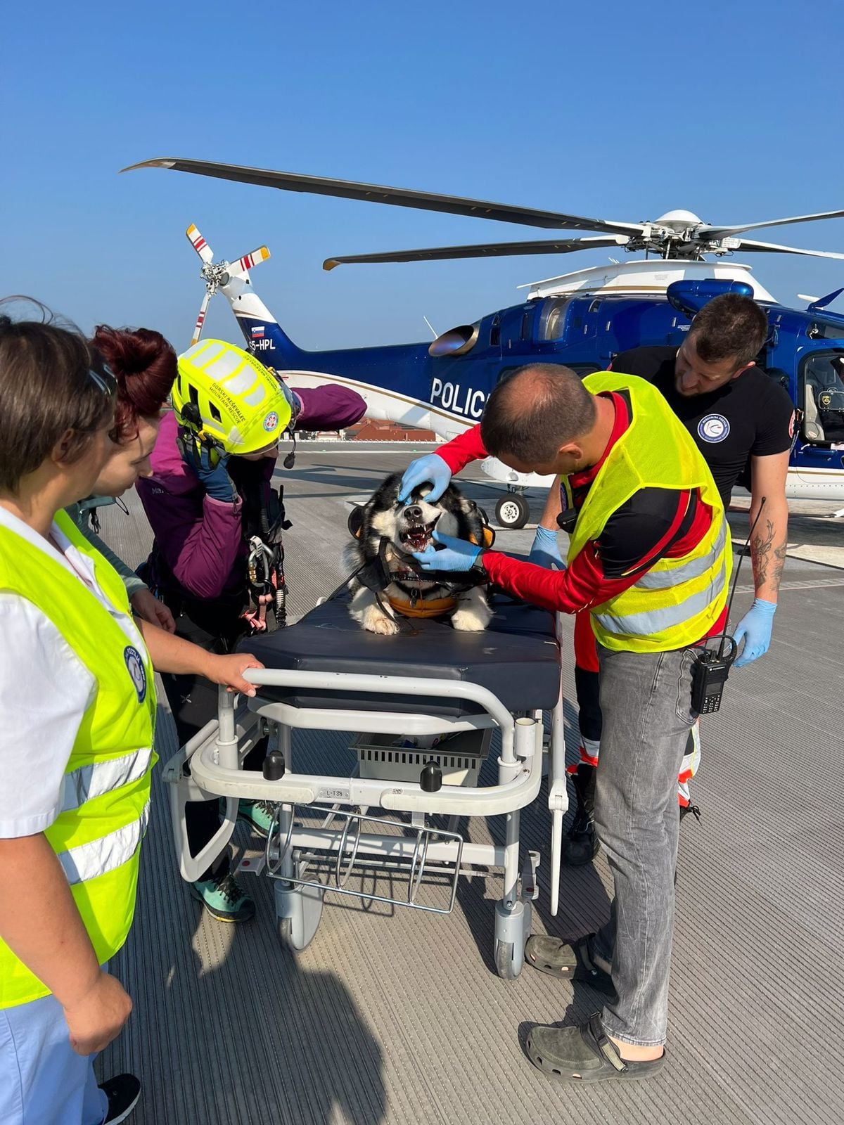 Žan Karničar je kot dežurni veterinar na Kliniki za male živali v nedeljo, 28. julija 2024, okoli 7.30 prejel klic skrbnice psičke, ki jo je na Jezerskem Stogu v jezik ugriznil gad. »Ta primer mi je ostal v posebnem spominu kot dokaz, da smo sposobni profesionalno in učinkovito poskrbeti za živali v stiski v gorskem svetu. Ko nas je skrbnica poklicala, sem ji svetoval, naj ima psička iztegnjen jezik, vrat, miruje in naj se obrne na 112 za pomoč pri prevozu. Nekaj minut pozneje sem z regijskega centra za obveščanje Kranj na kliniko prejel klic in začela se je organizacija prevoza. Psičko in njeno skrbnico je na kraju nesreče pobral helikopter slovenske policije z dežurno ekipo GRZS z Brnika. Helikopter je nato pristal na heliportu UKC LJ, v vmesnem času smo na kliniki pripravili vse potrebno za njeno primarno oskrbo. Že med prevozom v reševalnem vozilu do Klinike za male živali smo psičko pregledali, ji dovajali infuzijo in zdravila proti bolečinam,« pravi Karničar, ki kot gorski reševalec in veterinar skrbnike psov poziva, naj jim ne bo nerodno poklicati na pomoč. »Tako kot rešujemo ljudi, pomagamo tudi živalim. Reševanje psičke Emme je steklo povsem enako, kot bi steklo reševanje ljudi. Pohvale gredo vsem udeleženim službam, ki so poskrbele, da je psička v dveh urah od ugriza prejela protistrup.« Čeprav je veliko ugrizov kač tako imenovanih suhih, brez vbrizganega strupa, vsako leto beležijo tudi primere zastrupitve. »Ugriz v jezik ali druge dele obraza je resno stanje, saj jezik zateče, zoži se dihalna pot, lahko pride do zadušitve, anafilaktičnega šoka, odmrtja tkiva ali drugih zapletov,« pojasnjuje Karničar. »Otekanje, bolečina, šibkost ali bruhanje so rdeče zastavice. Pes naj miruje, gibanje omejimo in čim prej do veterinarja v dolino, po potrebi z oskrbo, organizirano prek 112. Hitro ukrepanje zahteva tudi zasuk želodca, ki se žal dogaja razmeroma pogosto. Zato pazimo, da pes pred odhodom v hribe ne zaužije večjih obrokov.« |