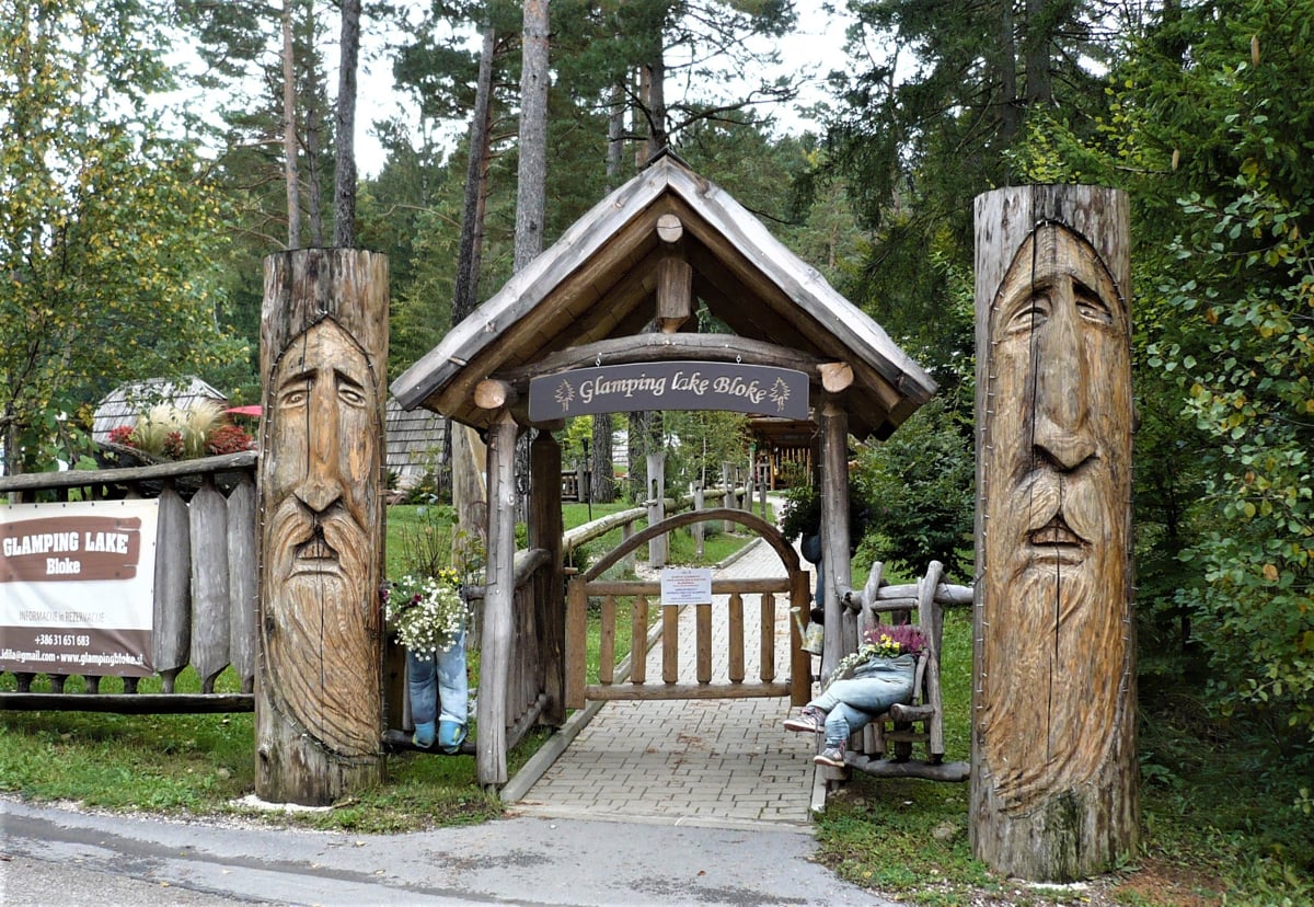 Od tam smo se peljali skozi naselje Strmca, Zakraj, Volčje in se ustavili pri Brunarici ob Bloškem jezeru. Sprehodili smo se okrog jezera in si ogledali turistično atrakcijo – pravljični Glamping Lake Bloke.