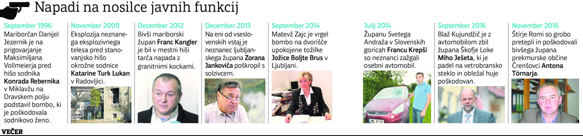 Nosilci javnih funkcij in demokratično izvoljeni predstavniki oblasti so v preteklosti že večkrat bili tarče nasilja, v nekaterih primerih je bilo to tudi politično motivirano. Po dveh razbitih šipah na Gostilni Maribor in eksploziji pred restavracijo Rožmarin mariborski župan Saša Arsenovič ocenjuje, da so ti dogodki bili politično motivirani.