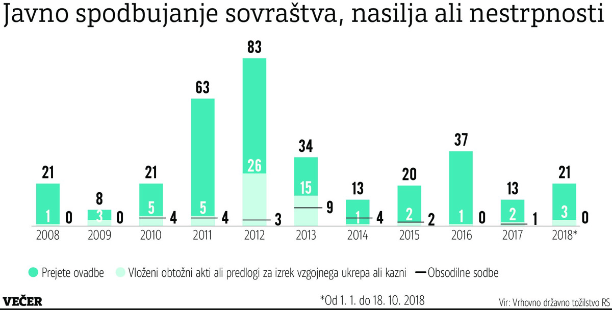 "Vrhovno državno tožilstvo je prejšnji teden vložilo zahtevo za varstvo zakonitosti zoper eno izmed sodb višjega sodišča, ki se nanaša prav na 297. člen," še nizajo dejavnosti na vrhovnem tožilstvu. Prav včeraj naj bi bil na to temo sklican razširjen strokovni kolegij kazenskega oddelka na vrhovnem tožilstvu. Vrhovni tožilci so včeraj razpravljali o pravnih problemih kaznivega dejanja javnega spodbujanja sovraštva, nasilja ali nestrpnosti po 297. členu kazenskega zakonika. V razpravi so soglasno ugotovili, da pravnega stališča iz leta 2013 ni treba spreminjati.