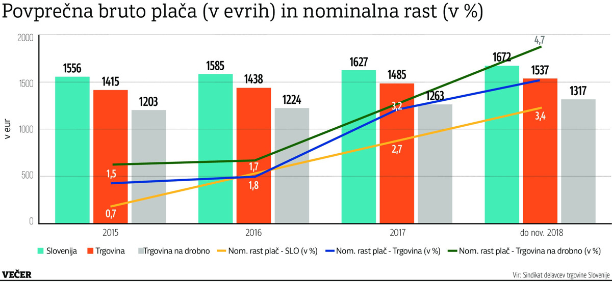 Prvo višje izplačilo bodo prodajalke in prodajalci prejeli v aprilu za marec. Prodajalke in prodajalci bodo od marca dalje v prvem letu zaposlitve pri tem trgovcu za 30-urni teden prejemali 940 evrov osnovne bruto plače na mesec oziroma 1220 evrov za 40 ur na teden. Neuradno smo izvedeli, da se bodo plače povišale tudi pri nekaterih drugih trgovskih družbah, vendar nam podatkov včeraj ni uspelo preveriti.