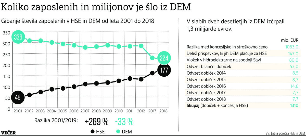 A to po naših informacijah še ne pomeni, da projekt združevanja poslovnih funkcij in iskanja sinergij, kot centralizacijo imenujejo na HSE, miruje, saj naj bi si na sedežu DEM izmenjevali kljuke predstavniki srednjega menedžmenta HSE in tipali teren. Bojazen zaposlenih v DEM, da bi se lahko število delovnih mest v Mariboru še naprej zmanjševalo, tako ni odveč. Če je HSE imel leta 2001 "le" 48 zaposlenih - čeprav je oče prenosa sedeža energetike iz Maribora v Ljubljano Janez Kopač leta 2001 dejal, zakaj toliko hrupa za tri do pet delovnih mest -, jih ima danes že skoraj trikrat več (177 zaposlenih), DEM pa za 112 oziroma za tretjino manj (224 zaposlenih). Še bolj skrb vzbujajoče je, da odhajajo strokovnjaki, v zadnjih šestih letih pa v DEM niso zaposlili nobenega novega.