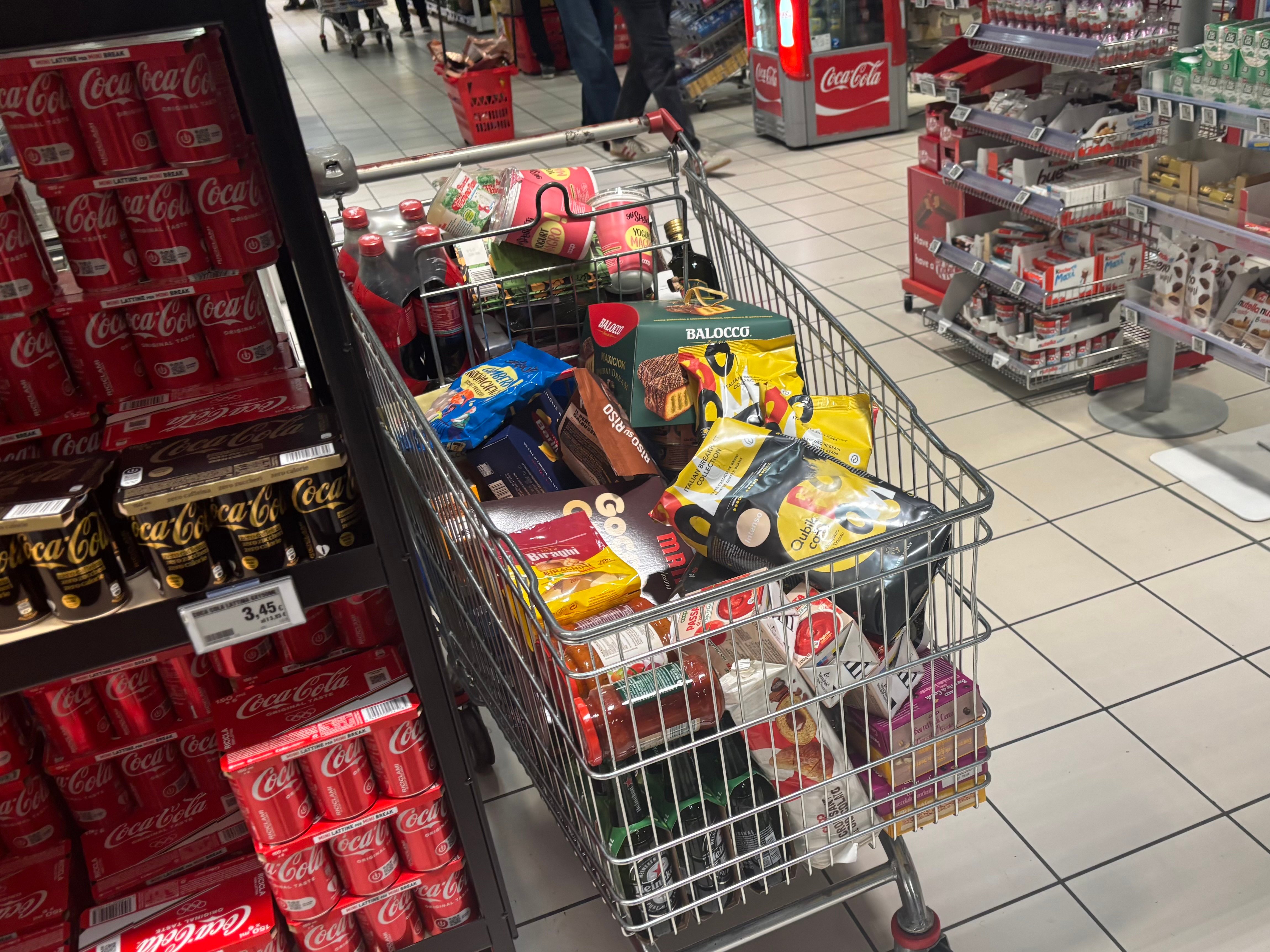 Ko na parkirišču pred trgovino ni več niti enega samega nakupovalnega vozička, je jasno: v trgovini je gneča. Ko pa stopiš skozi vrata in zagledaš vozičke, naložene do vrha, se najprej vprašaš, ali morda kaj delijo zastonj ali pa so ljudje zaradi dogajanja v svetu že začeli panično kopičiti zaloge. Toda že bežen pogled v vozičke razkrije, da ne gre za krizno blago. Nikjer ni videti gore toaletnega papirja, vreč moke ali paketov kvasa. Namesto tega so vozički polni pršuta, pralnih praškov, piva, sokov, gaziranih pijač, sladkarij in - predvsem - testenin.