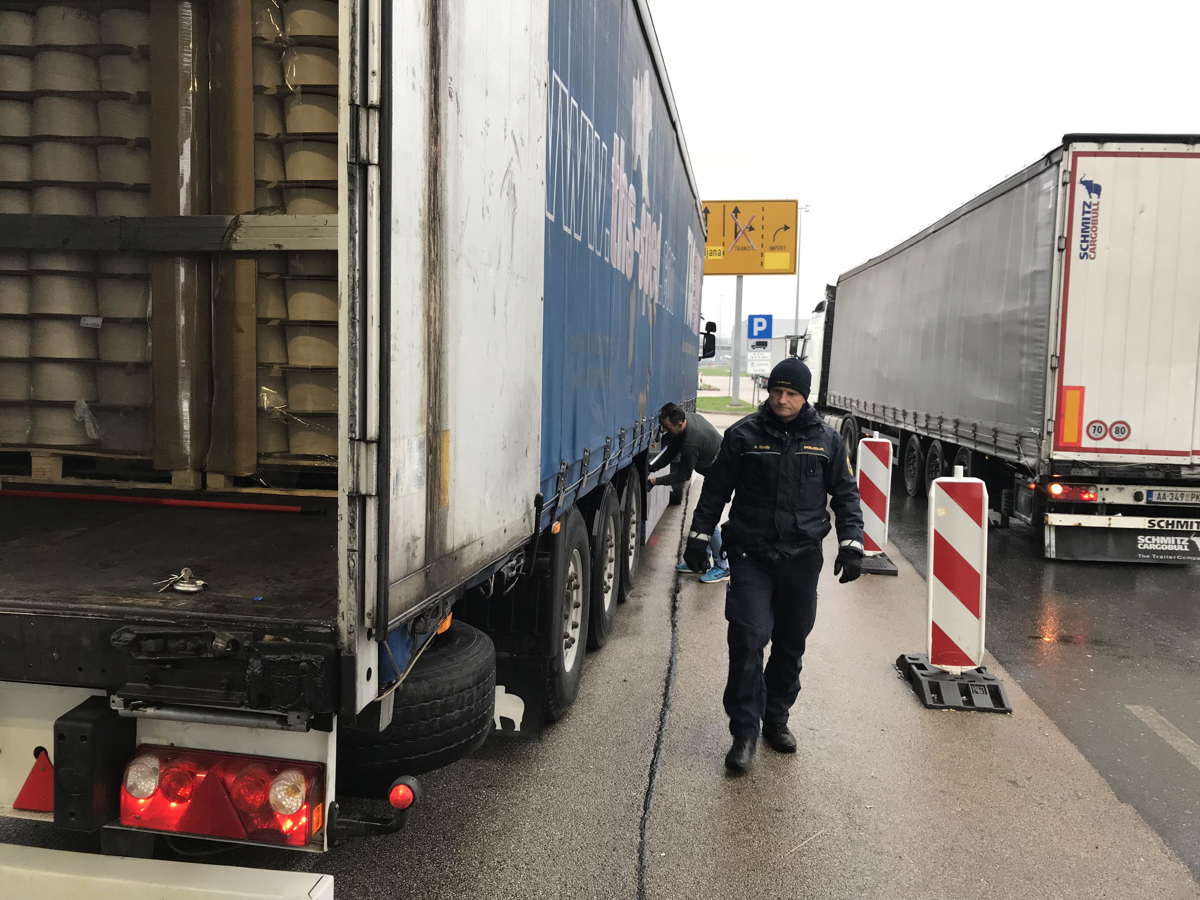 Na mednarodnih mejnih prehodih Obrežje in Gruškovje so danes policisti zaradi zaostritve stavke, ki traja že od februarja, začeli izvajati poostren nadzor tovornega prometa v državo in tudi iz nje. Zaradi tega se na obeh mejnih prehodih, predvsem iz sosednje Hrvaške, povečuje kolona tovornjakov. Čakalna doba na obeh prehodih je okoli štiri ure za tovornjake, ki vstopajo v Slovenijo.