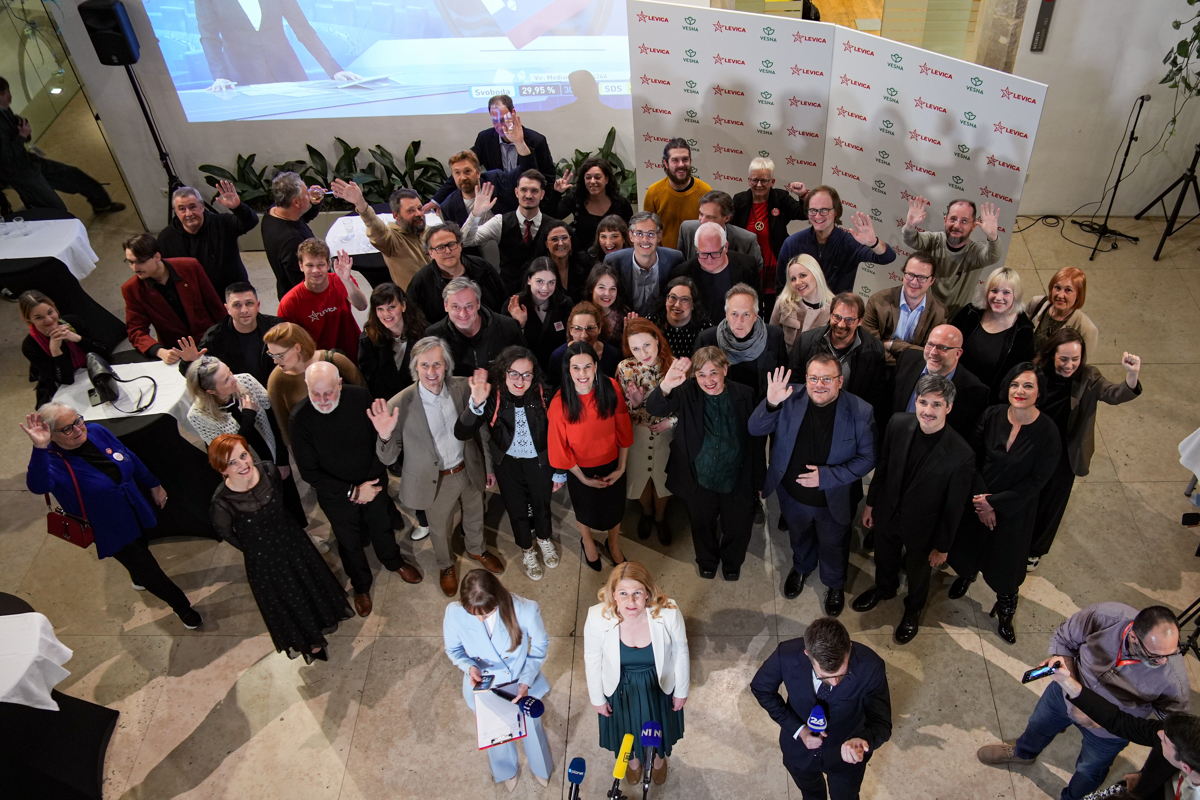 V štabu Levice in Vesne v Mestnem muzeju Ljubljana so bili še minister Simon Maljevac, generalni sekretar Levice Matej Zupanc in poslanka Nataša Sukič, ki je med drugim v šali dejala, da so "resnično veseli uspeha".