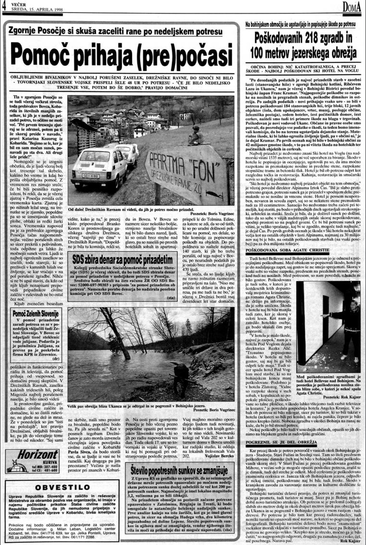 Magnituda potresa z epicentrom blizu Lepene je bil 5,6, torej malo višja od te na Hrvaškem. Žrtev k sreči ni bilo, vsaj smrtnih ne, toda v Bovcu, Kobaridu, Drežniških Ravnah in drugih krajih je bilo opustošenje veliko. Veliko ljudi je tisto in naslednje leto moralo preživeti v zabojnikih, saj so bile njihove hiše preveč poškodovane, da bi jih lahko obnovili. Po kasnejših ocenah je nastalo za najmanj sto milijonov evrov škode. Po podatkih ministrstva za okolje in prostor je bilo v potresu poškodovanih kar 4055 različnih objektov. Z državno pomočjo so jih obnovili 1829. Popotresna obnova se je začela še v letu 1998, končala pa leta 2009. Od skupaj sto milijonov evrov proračunskih sredstev, ki so jih namenili zanjo, so 81,3 milijona evrov porabili za izvedbo del, ostalo pa za podporne dejavnosti, med drugim projektiranje, namestitve, informiranje, arhiviranje in državno tehnično pisarno.