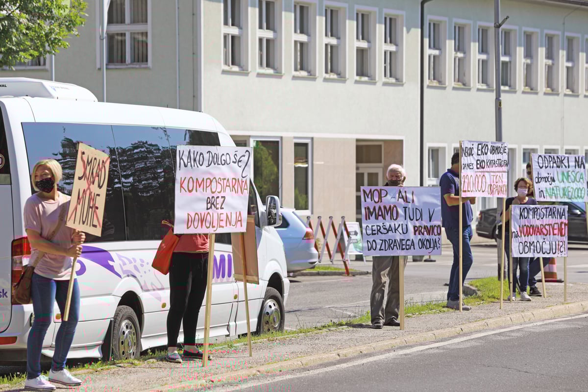 Na pločniku pred Palomo pa so protestniki iz Ceršaka s transparenti želeli opozoriti vlado in predvsem okoljskega ministra Andreja Vizjaka na smrad, ki se širi iz tamkajšnje kompostarne. Marija Janžek, vodja civilne iniciative proti kompostarni Ceršak, je povedala, da že od leta 2009 živijo v nenormalnih razmerah in v smradu. Svoje zahteve utemeljujejo tudi na reviziji okoljevarstvenega dovoljenja, ki so jo po dolgih letih dočakali. "Na noben način ne bomo pristali na to, da ta kompostarna dobi pravnomočno okoljevarstveno dovoljenje," je bila odločna Janžekova.